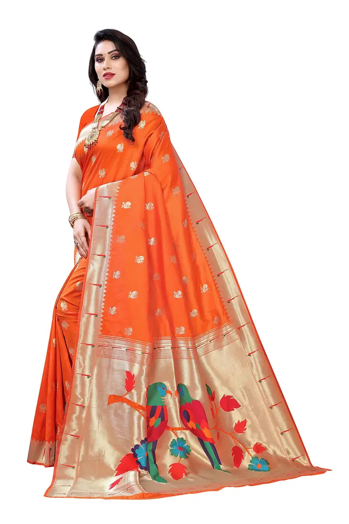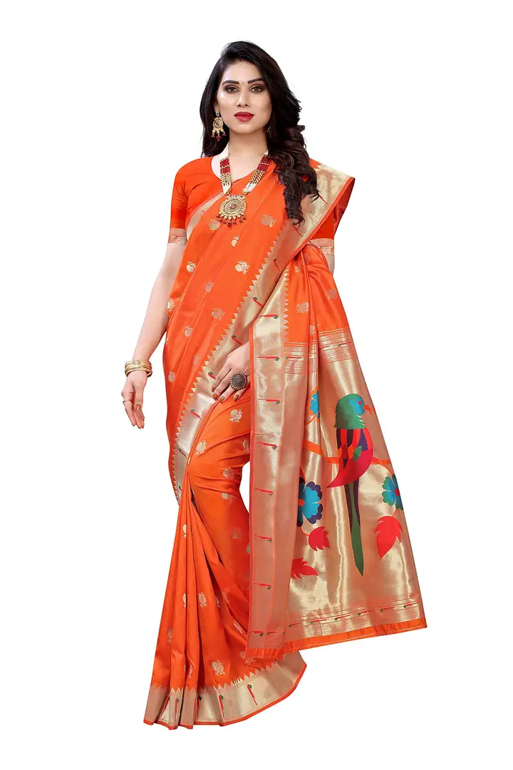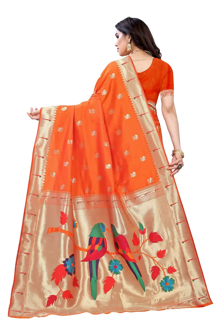 Pandadi Saree Women's Paithani Paithani Silk Saree With Blouse Piece (184PS_Orange)