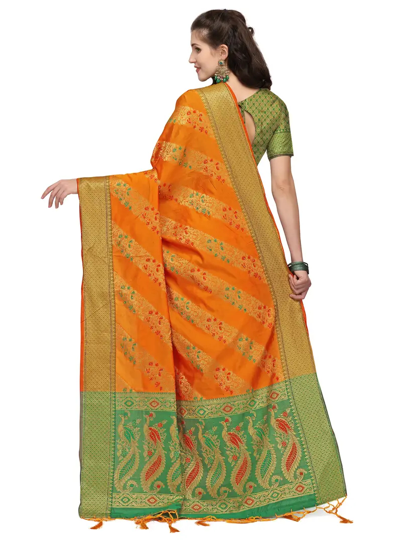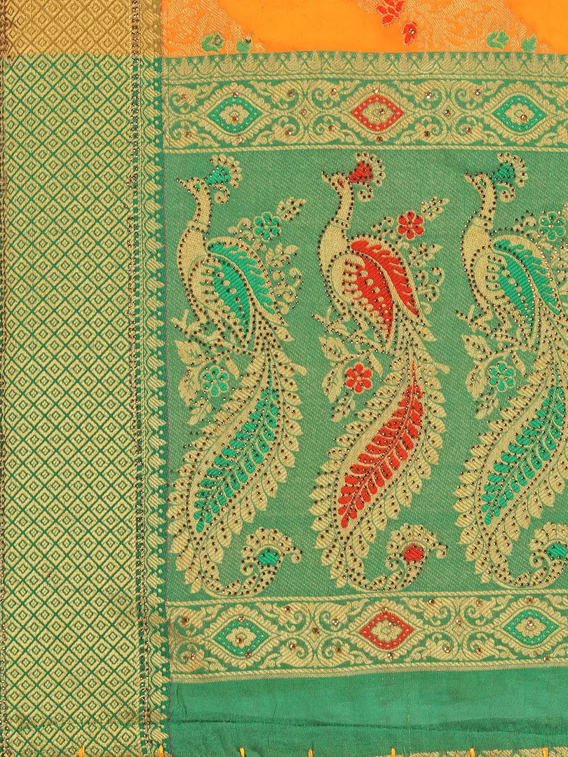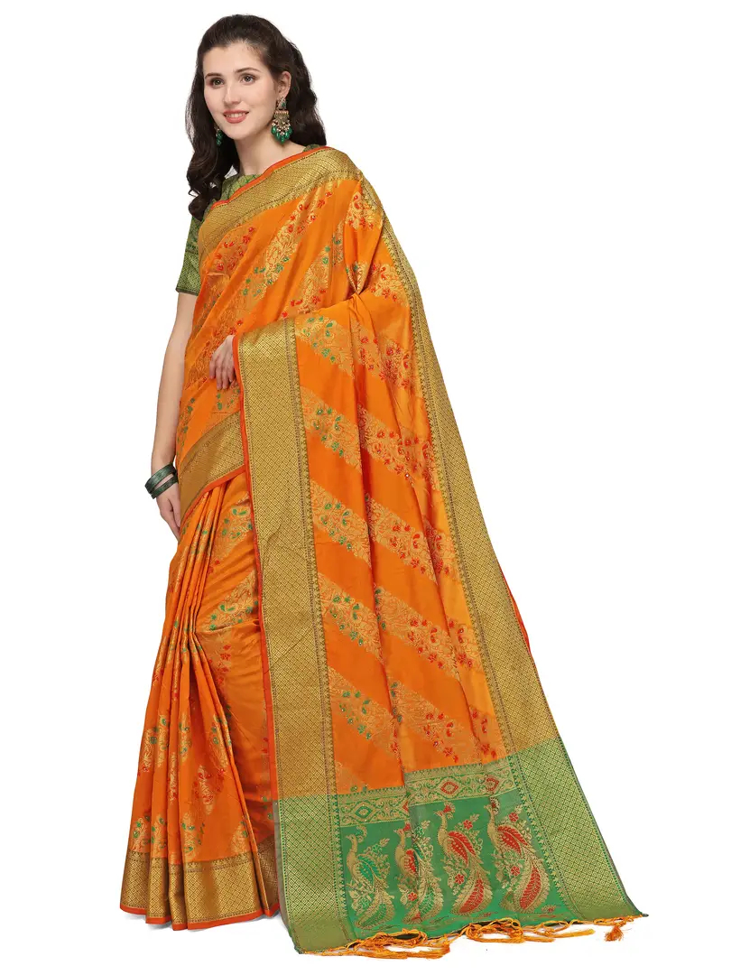 Party Wear Apricot Orange Colour Banarasi Silk Embelished Work Festival Saree