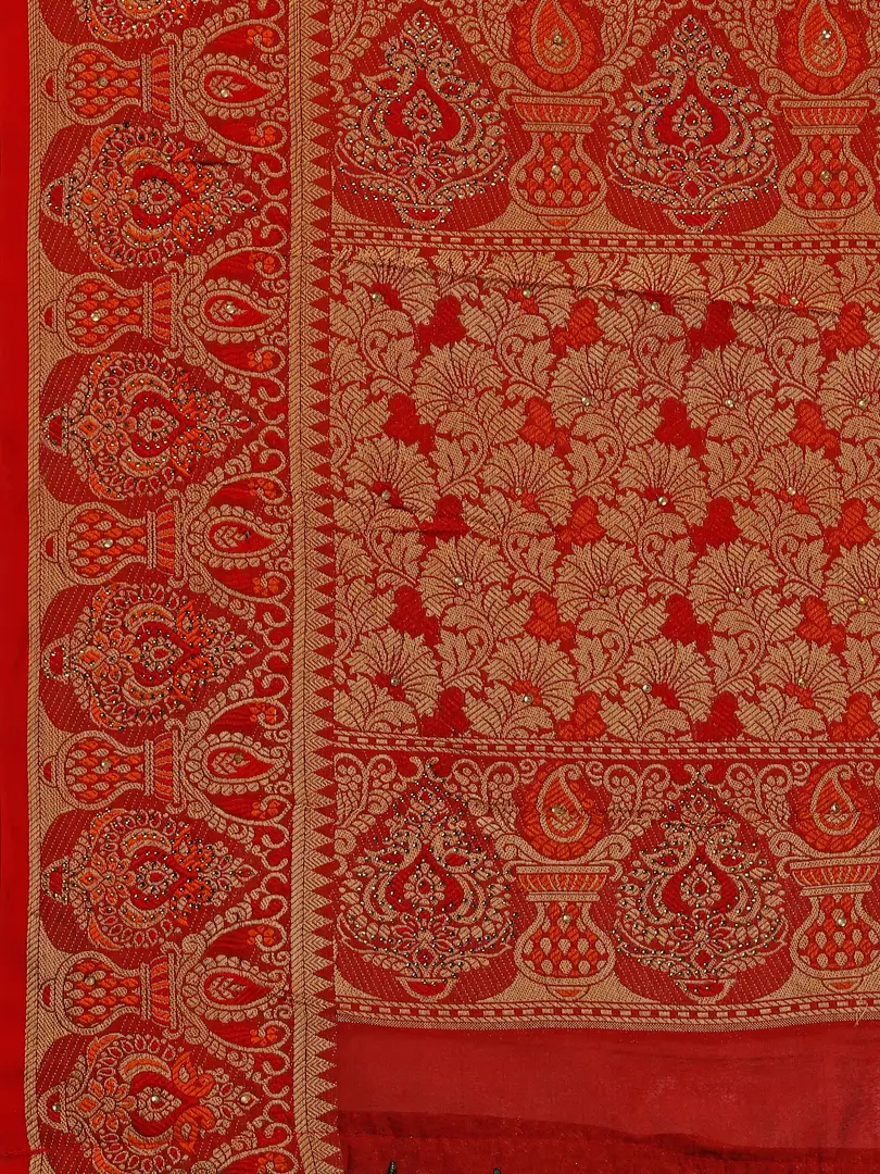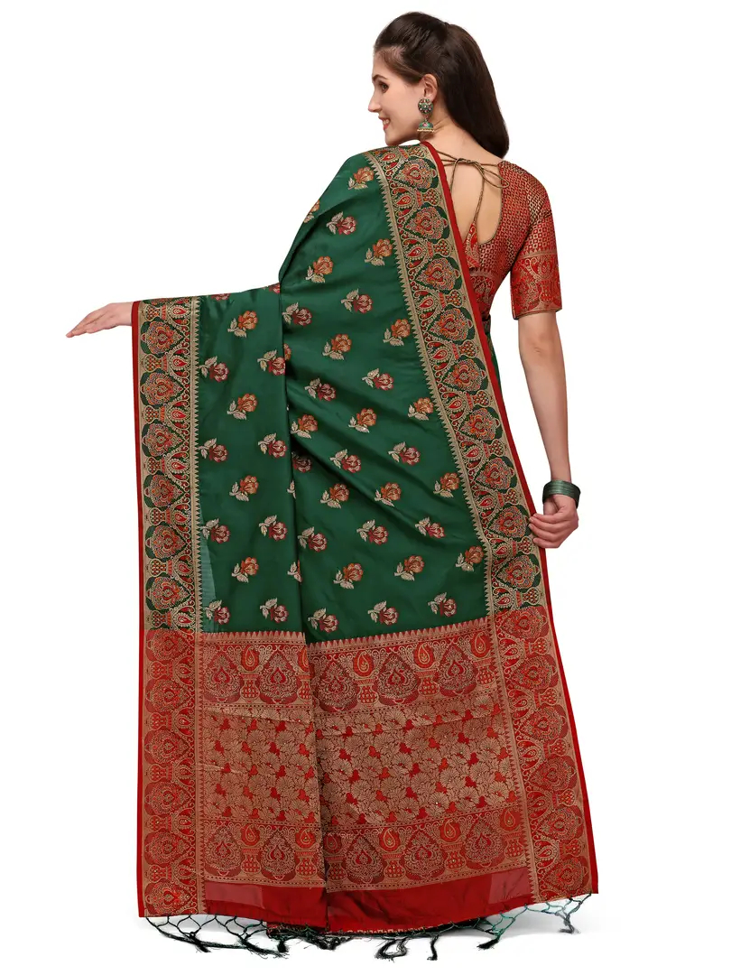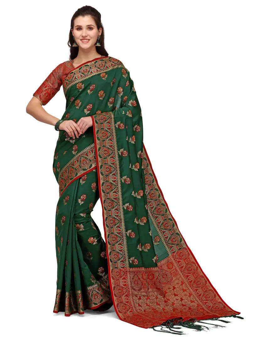 Party Wear Bottle Green Colour Banarasi Silk Embellished Work Festival Saree