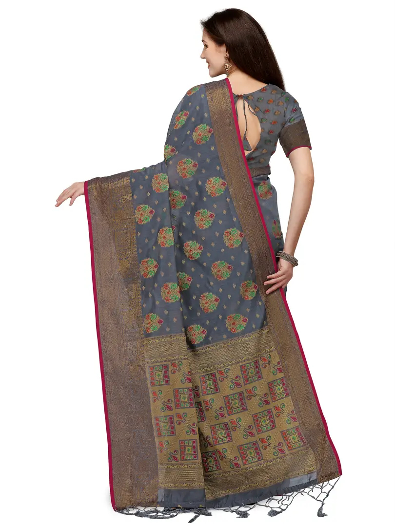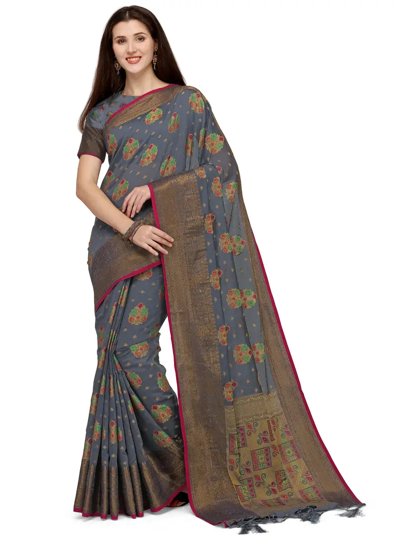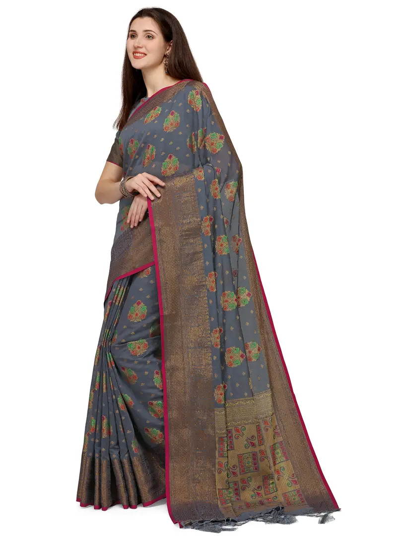 Party Wear Flint Colour Banarasi Silk Embelished Work Festival Saree