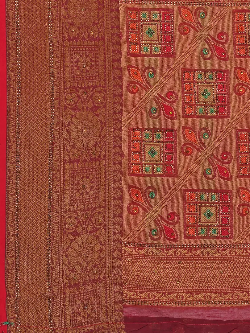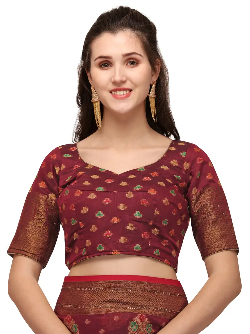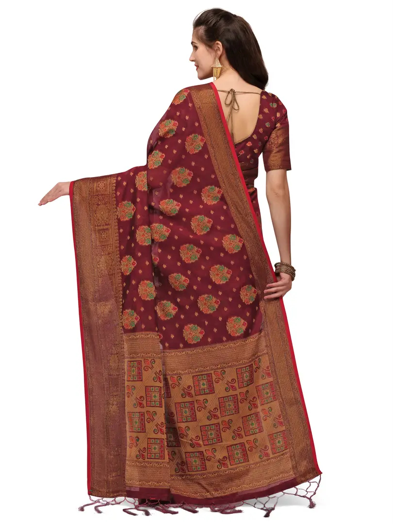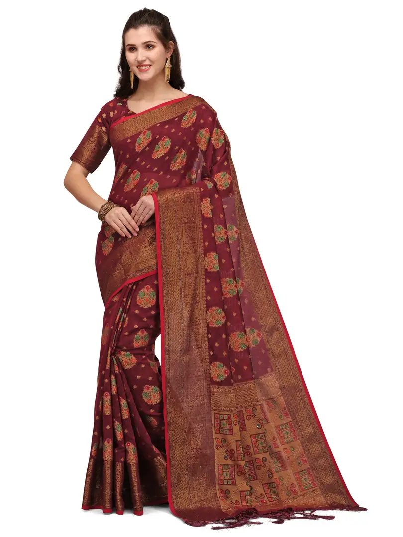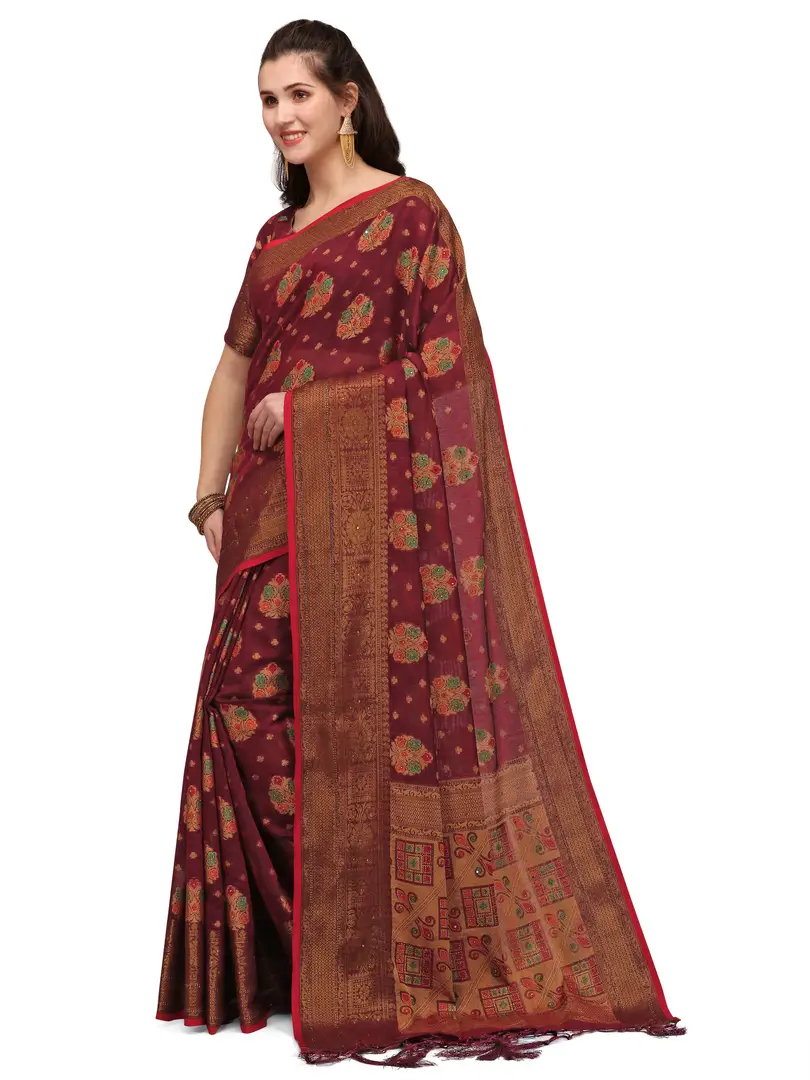 Party Wear Maroon Colour Banarasi Silk Embelished Work Festival Saree