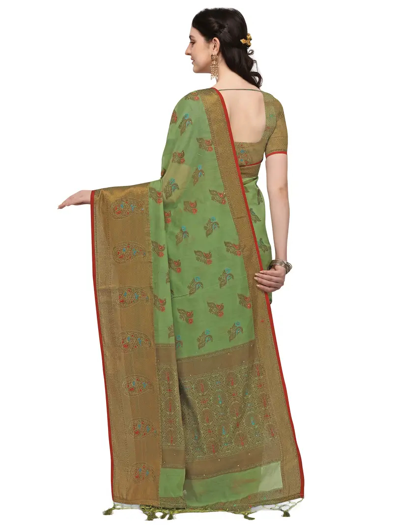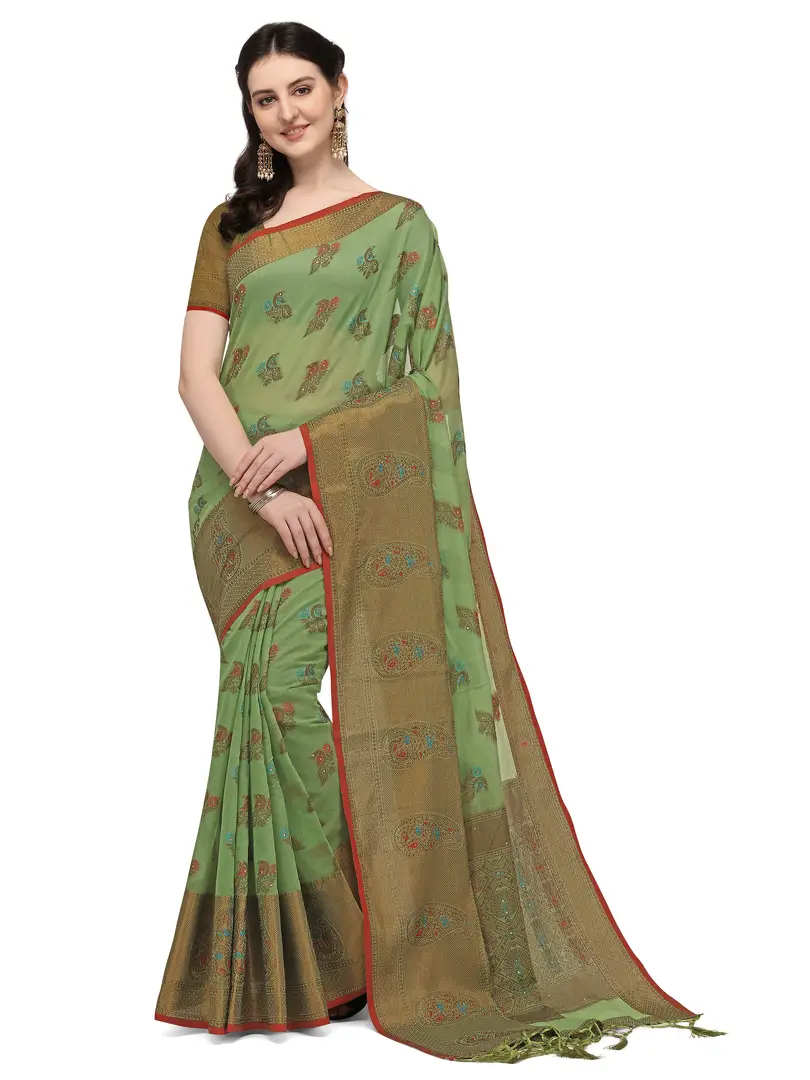 Party Wear Pista Colour Banarasi Silk Madhubani Work Festival Saree