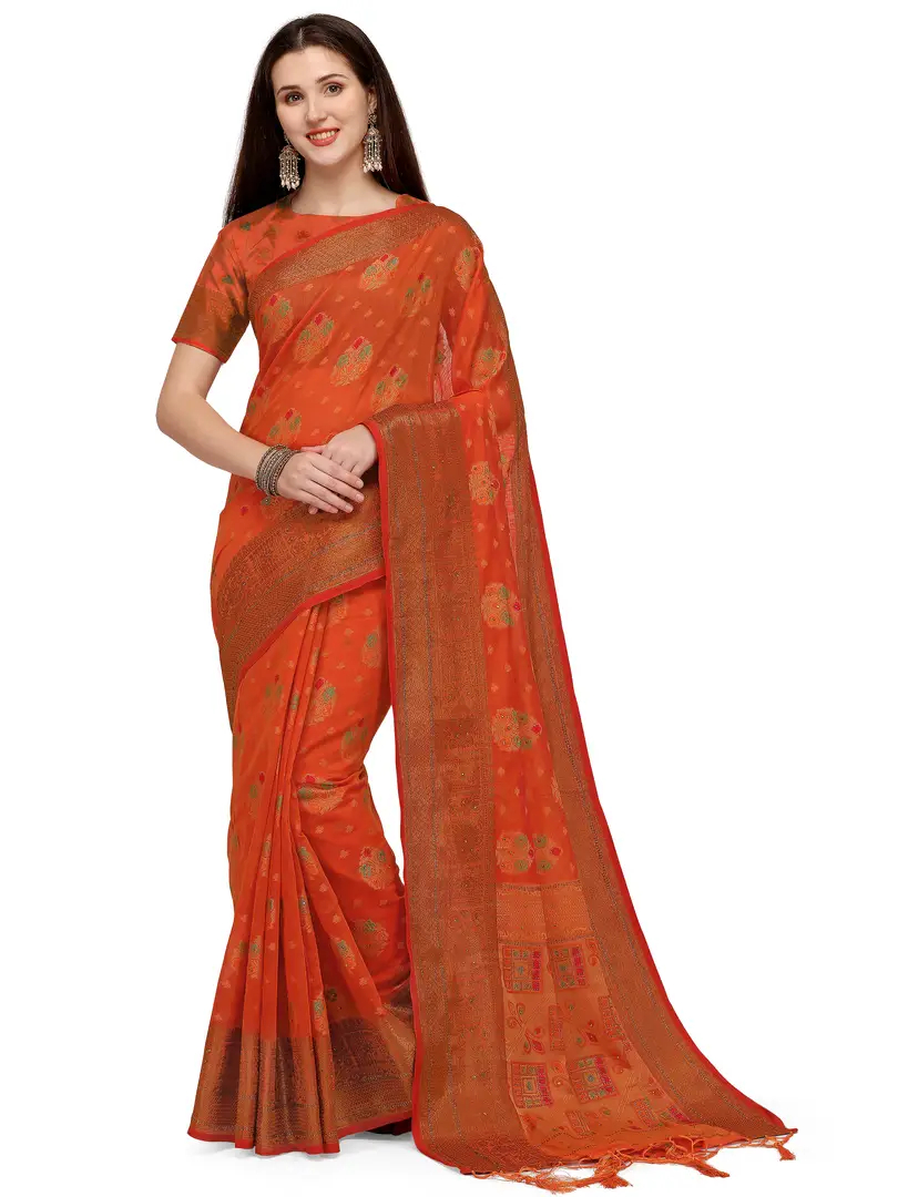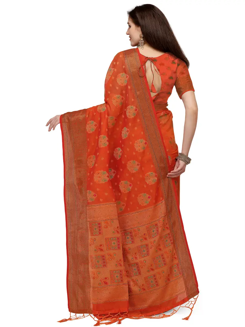 Party Wear Pumpkin Colour Banarasi Silk Embelished Work Festival Saree