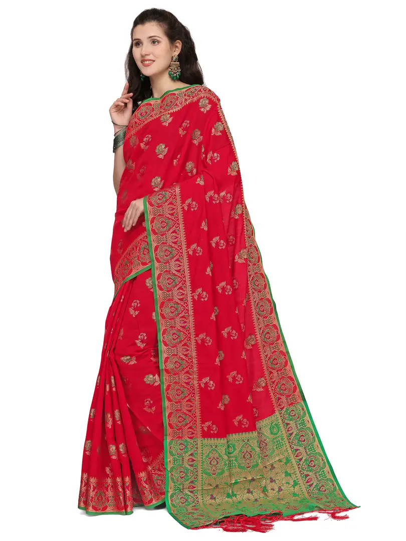 Party Wear Rasberry Colour Banarasi Silk Embellished Work Festival Saree