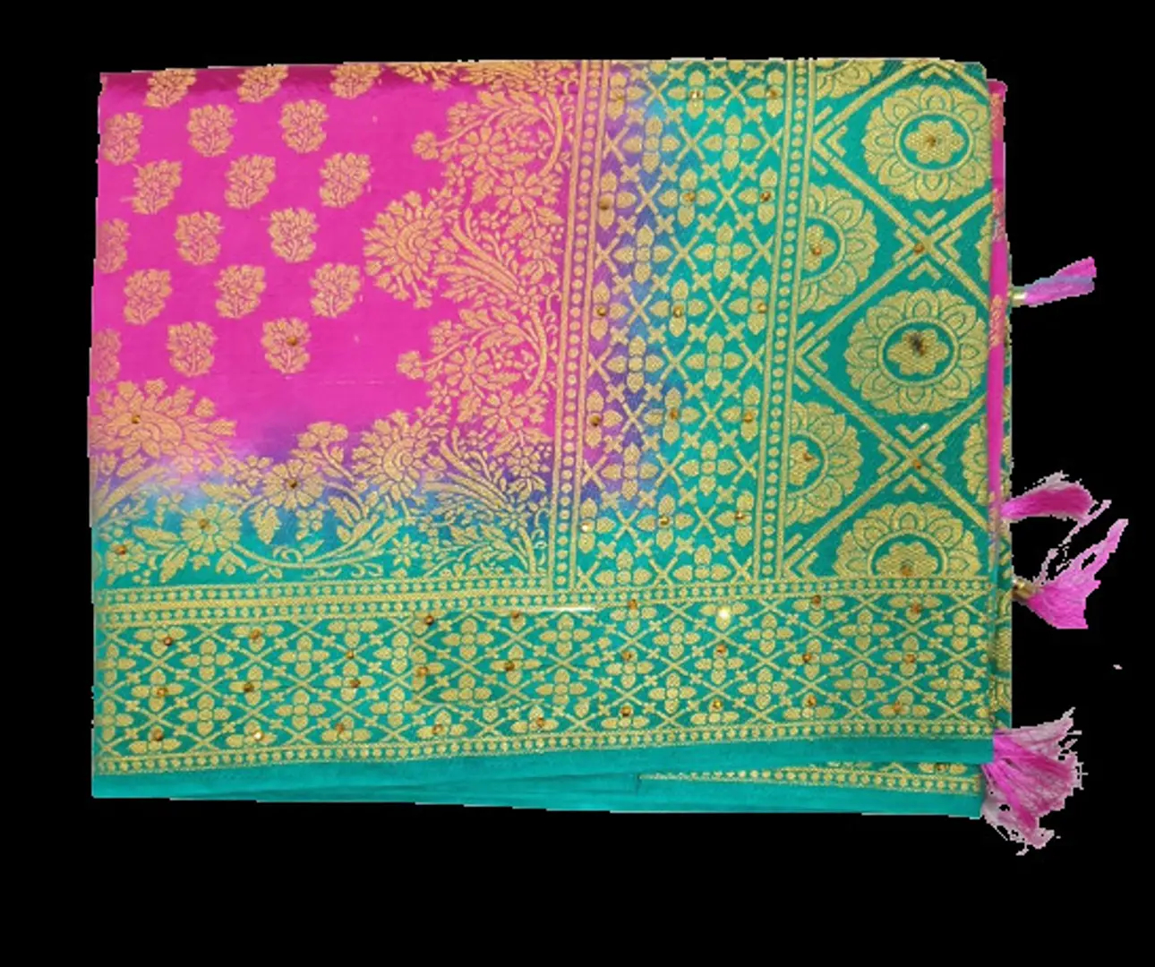 Party Wear Silk Fabric Saree With Weaved Border/Jhaalar Latkan
