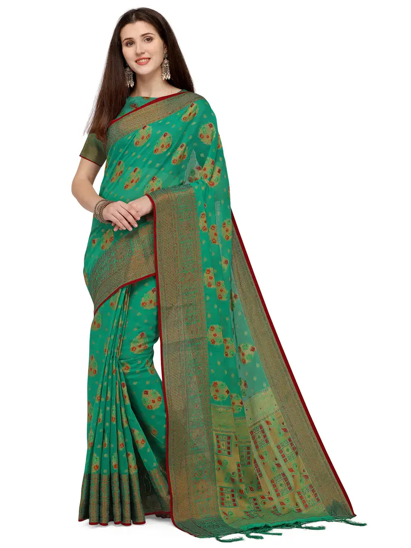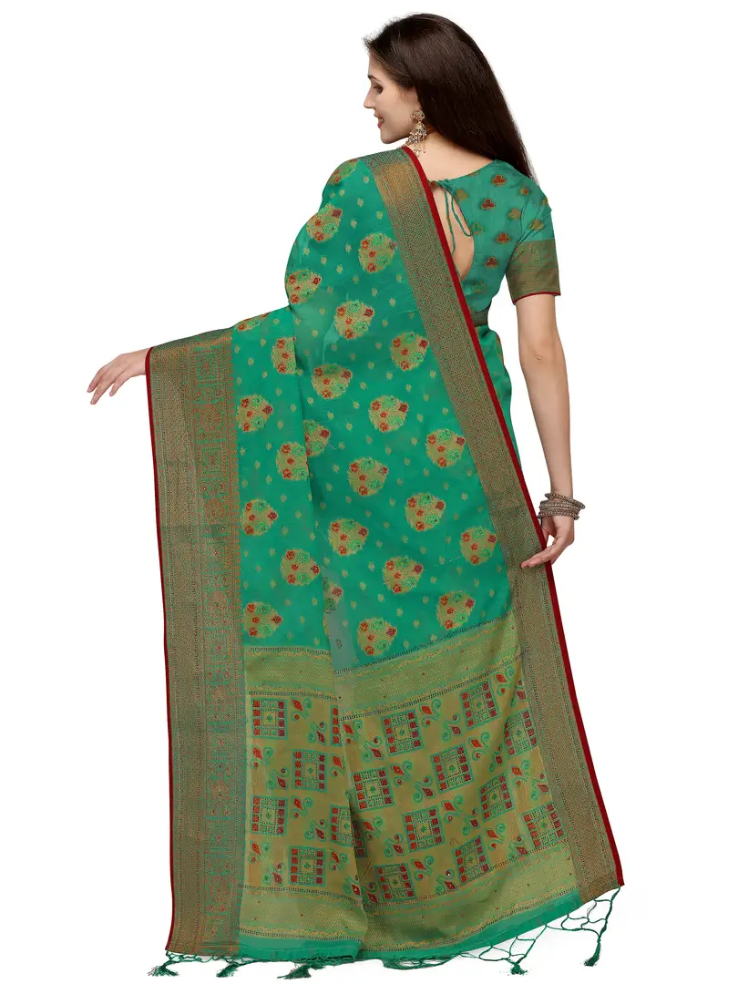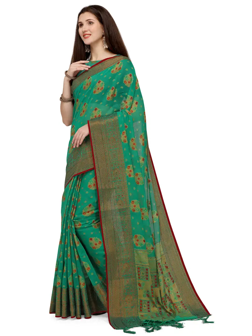 Party Wear Teal Green Colour Banarasi Silk Embelished Work Festival Saree