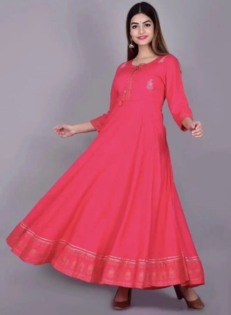 Pink Viscose Rayon Embroidered Kurtas For Women