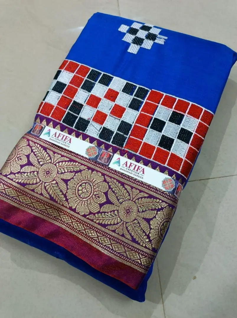 Sambhalpuri Satin Silk Embroidered Sarees With Blouse Piece