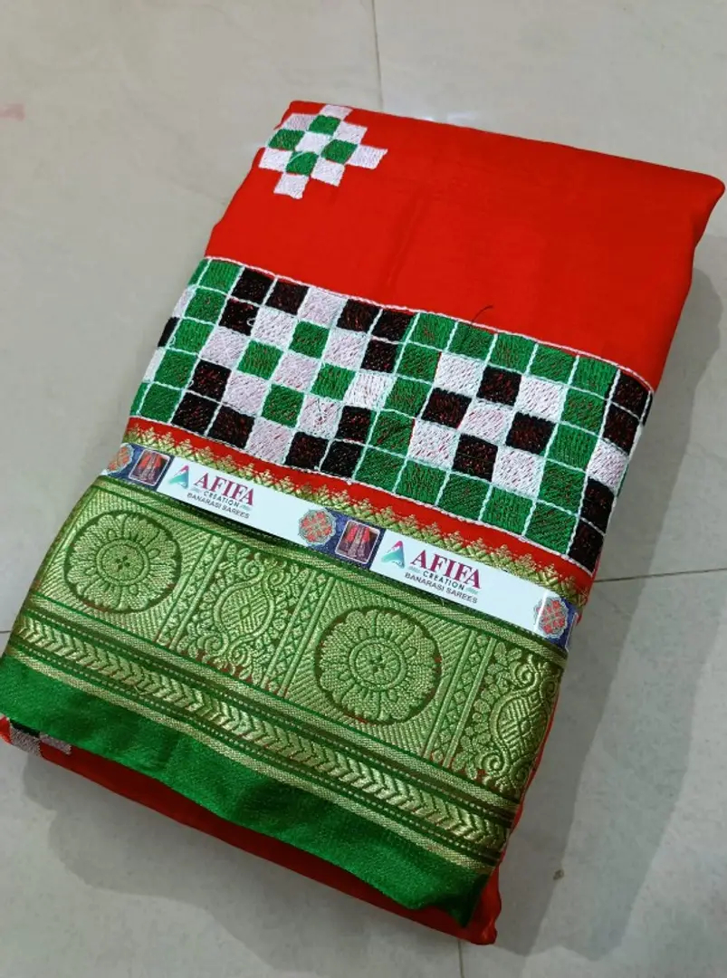 Sambhalpuri Satin Silk Embroidered Sarees with Blouse Piece