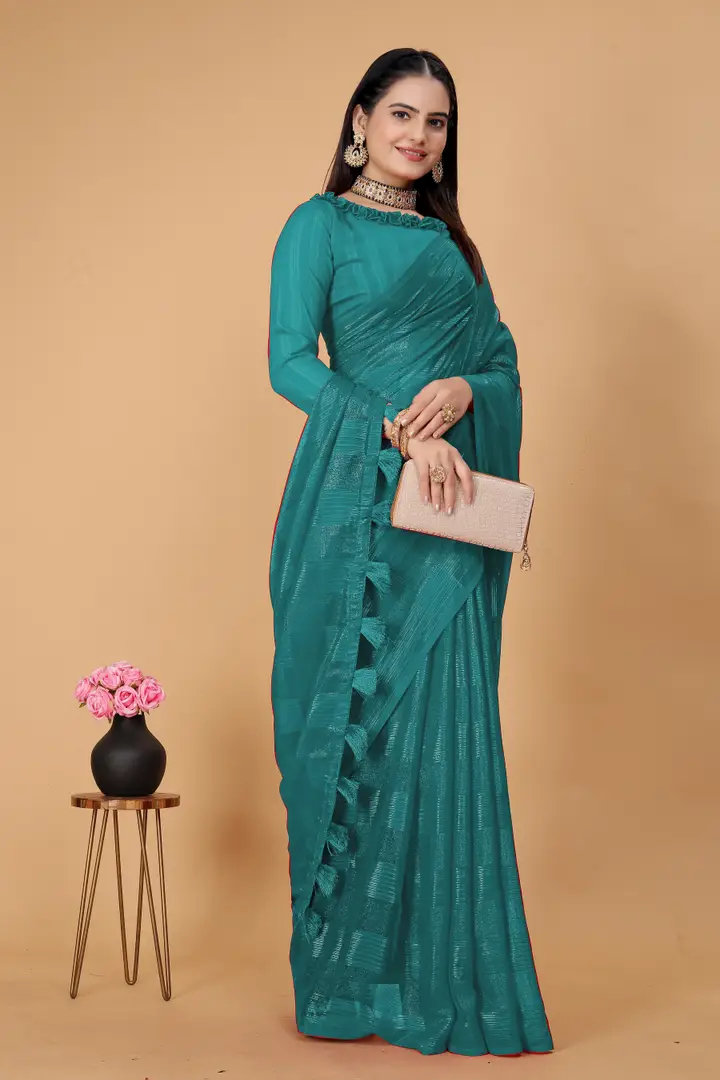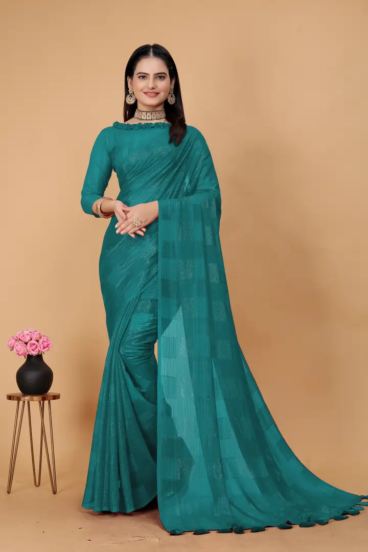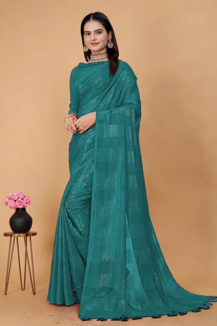 Self design with jacquard chex and silicon jari Saree and self design blouse piece