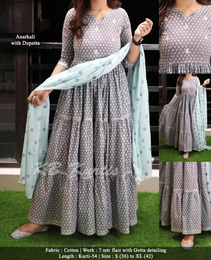 Stunning Cambric Cotton Printed Anarkali Kurta With Mulmul Dupatta For Women
