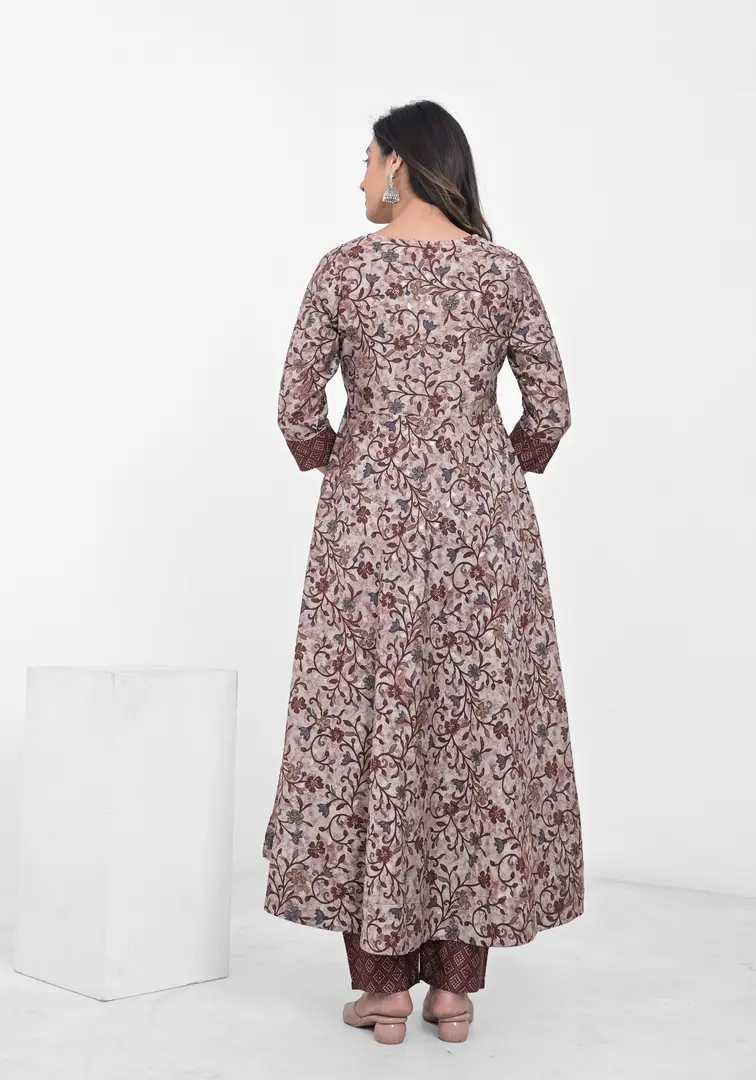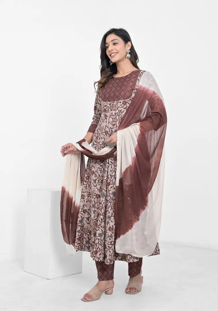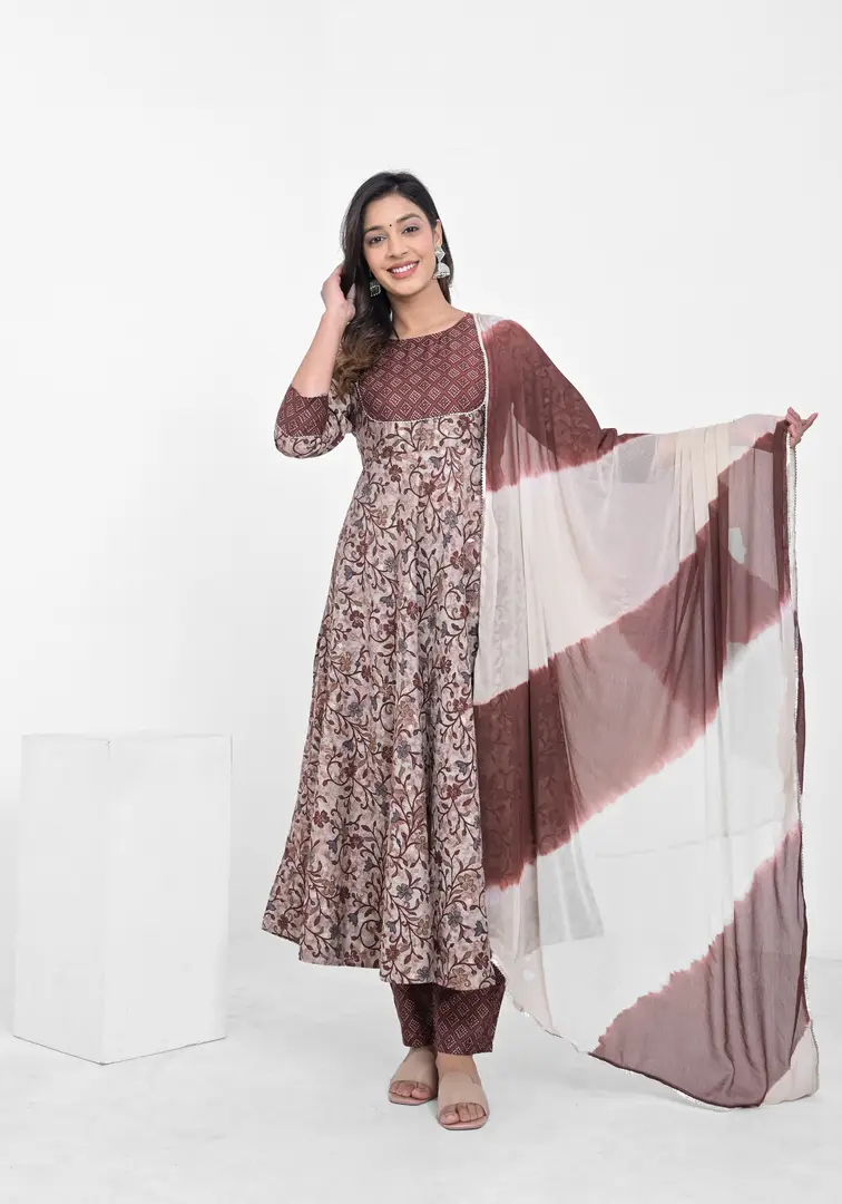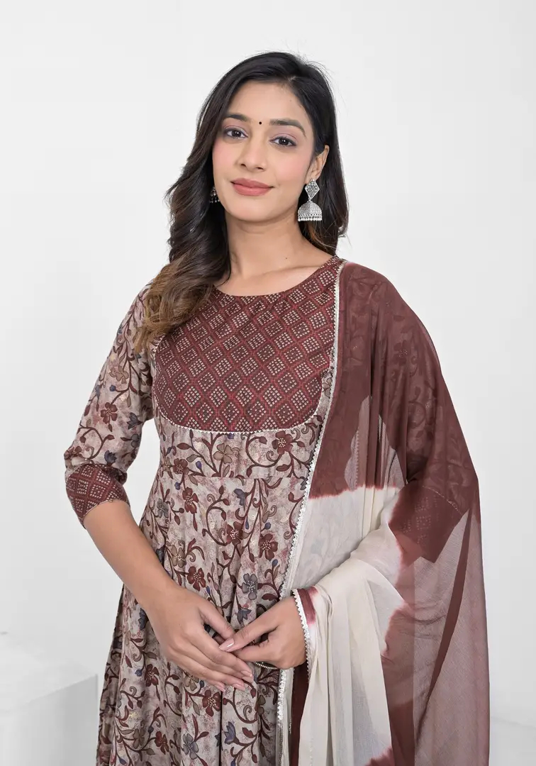Stylish Brown Cotton Silk Self Pattern Kurta, Bottom And Dupatta Set For Women