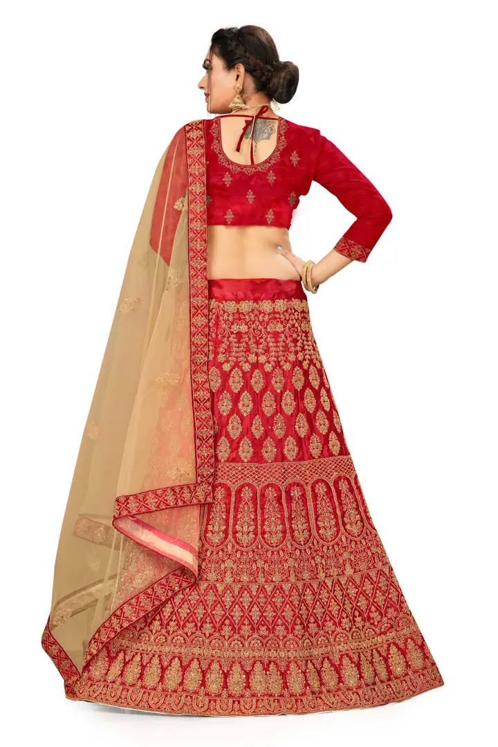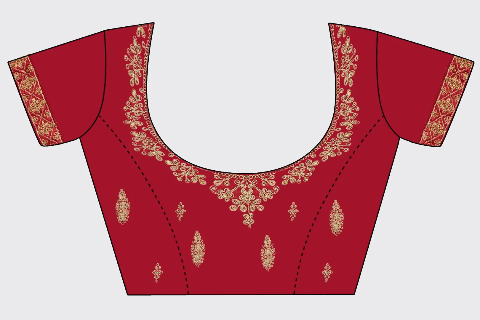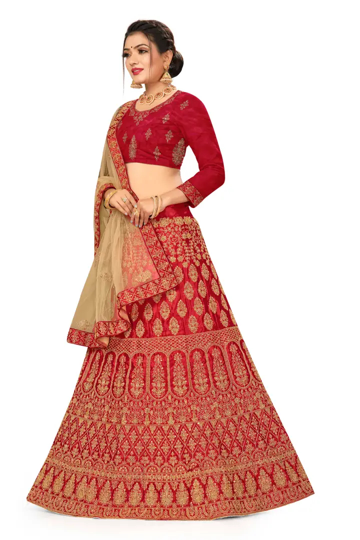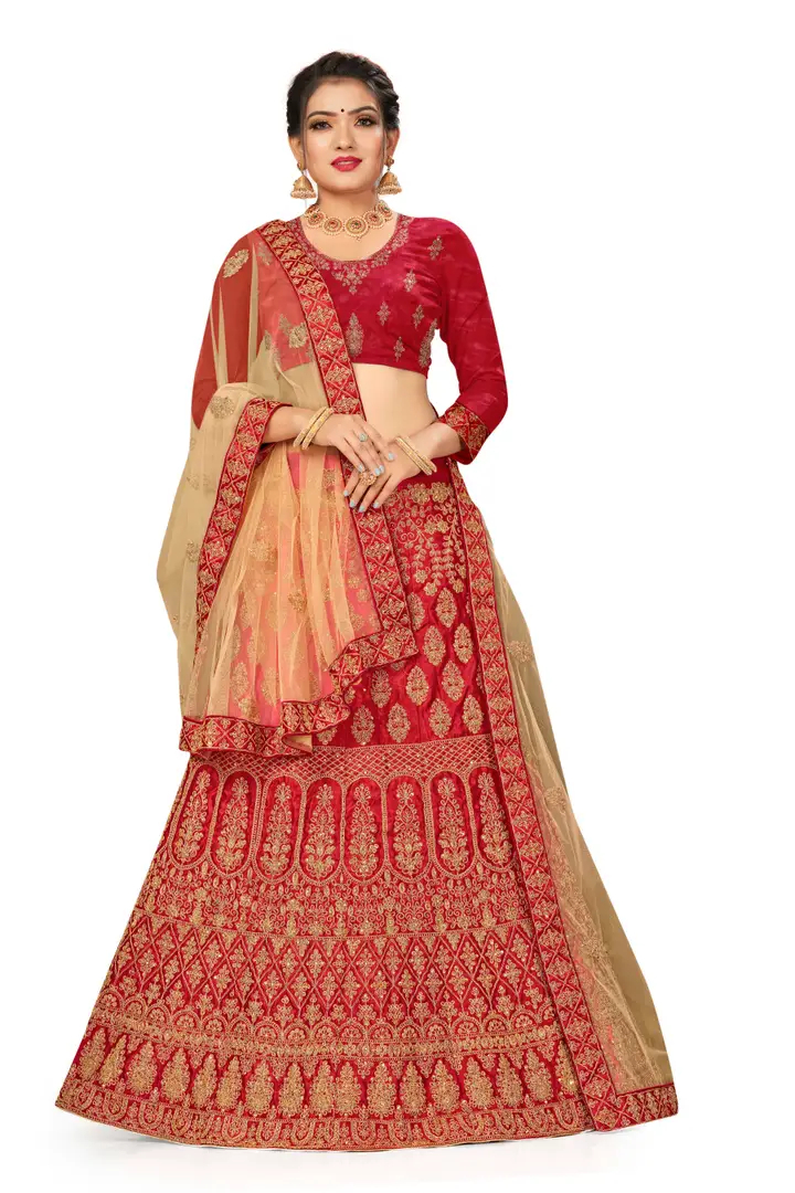 Stylish Maroon Semi-Stiched Embroidered Silk Lehenga Choli Set