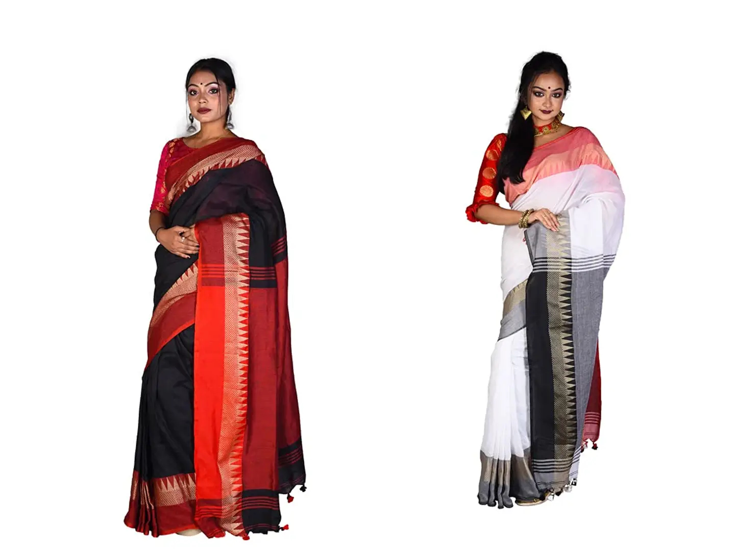 Sushrita Boutique Womens Striped Solid Woven Handloom Saree (Bhumri Combo_7)