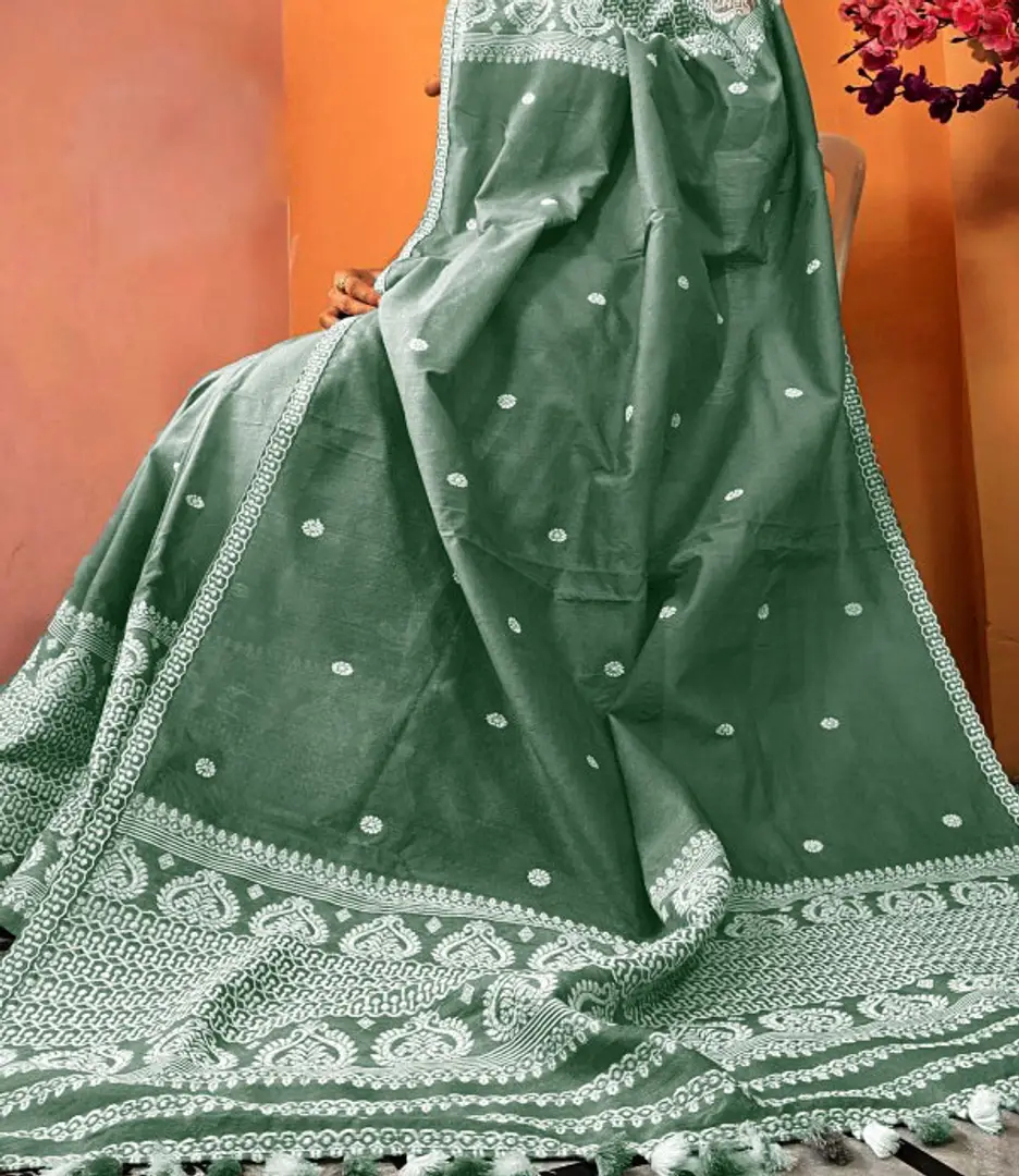 Trendy Cotton Slub Green Woven Design Saree With Blouse Piece For Women