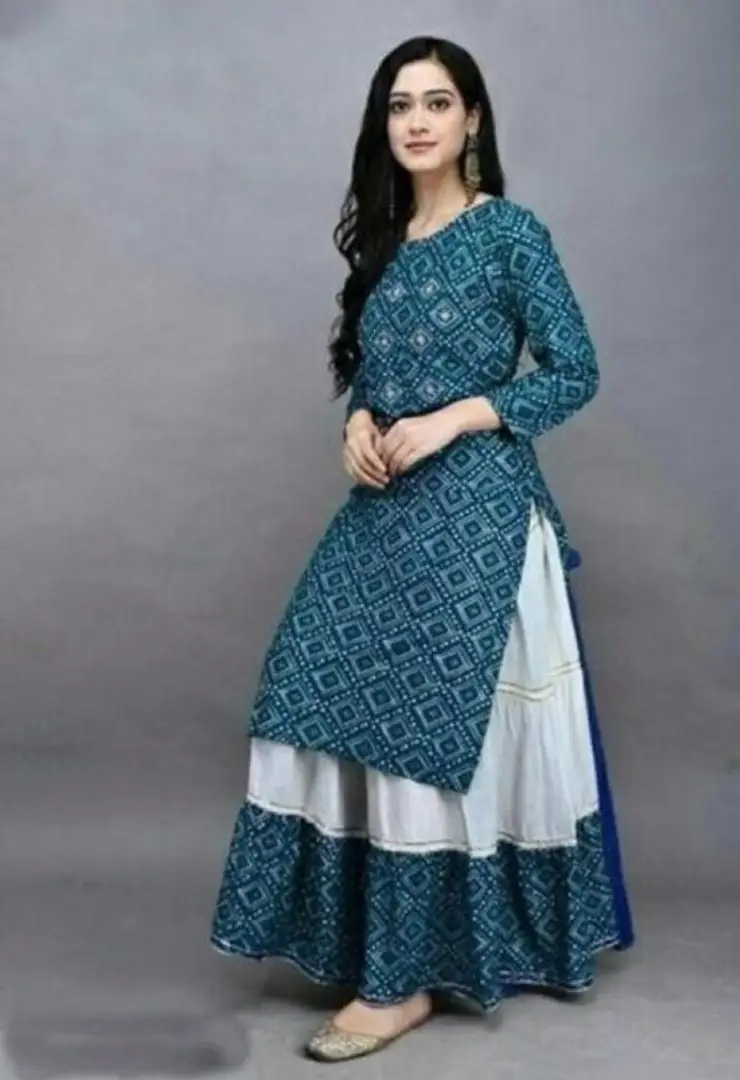 Trendy Rayon Bandhani Print Kurti With Skirt For Women