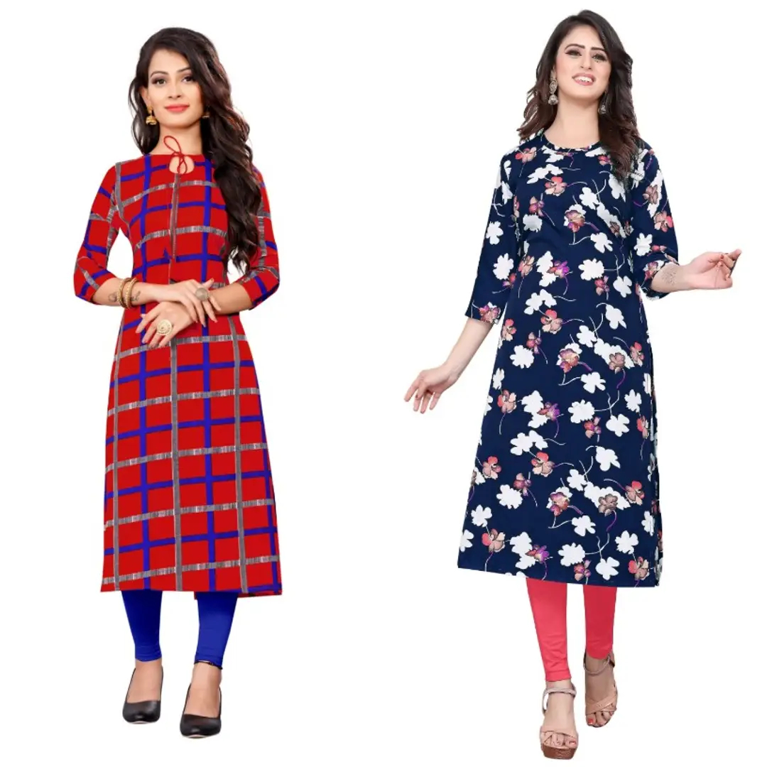 Women Printed Crepe Straight Kurti (Pack Of 2)
