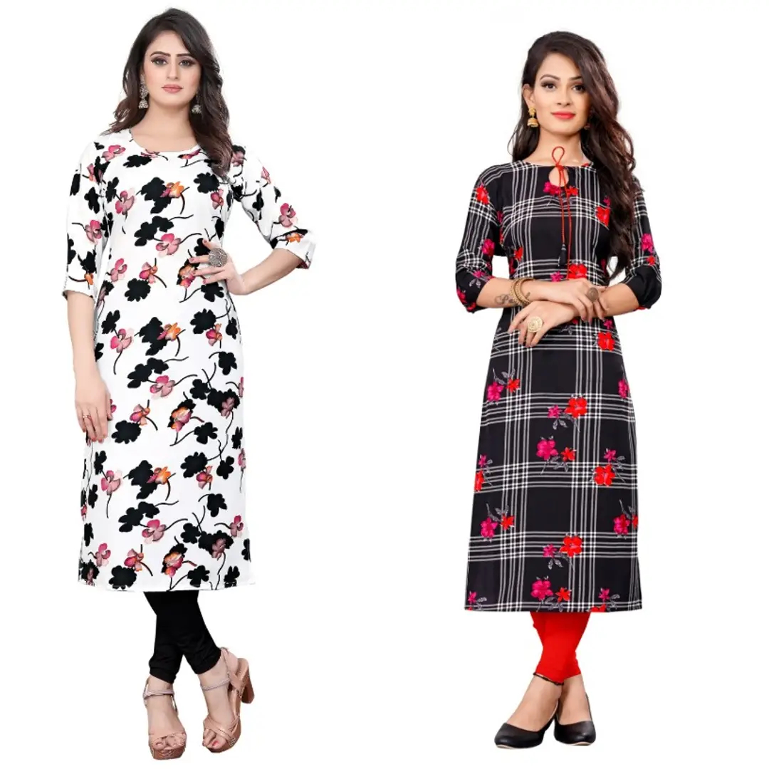 Women Printed Crepe Straight Kurti (Pack Of 2)