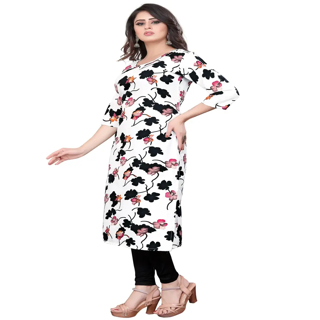 Women Straight Type Printed Kurta. There are frac34; Sleeve. Sleeve Type is Regular. Nack type is Round nack. Length Of kurti is 42 inch. Bust Sizes Are 36-46 inchs. Waist sizes Are 32-42 inchs. Sleeve Length Is 15 inch. Very Soft Material Of kurti And very Easy To use. Must Buy.Women Printed Crepe Straight Kurti (Pack Of 2)