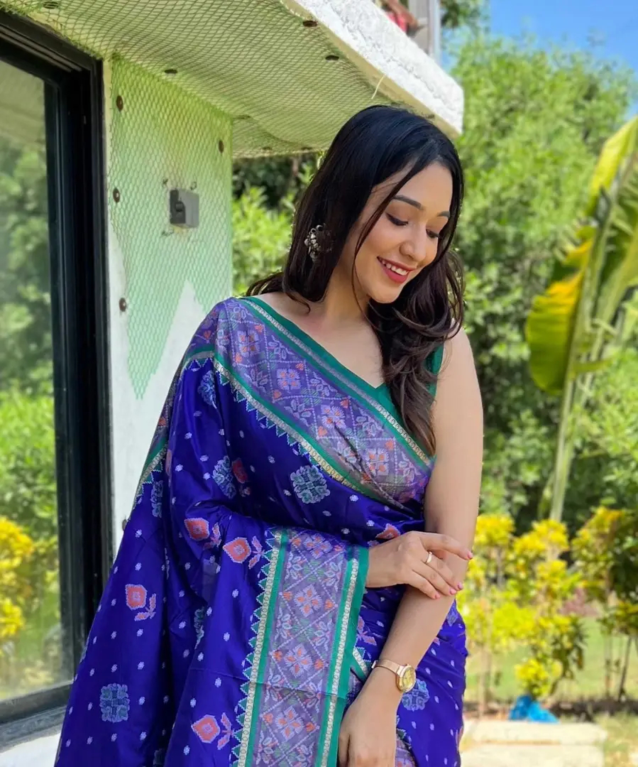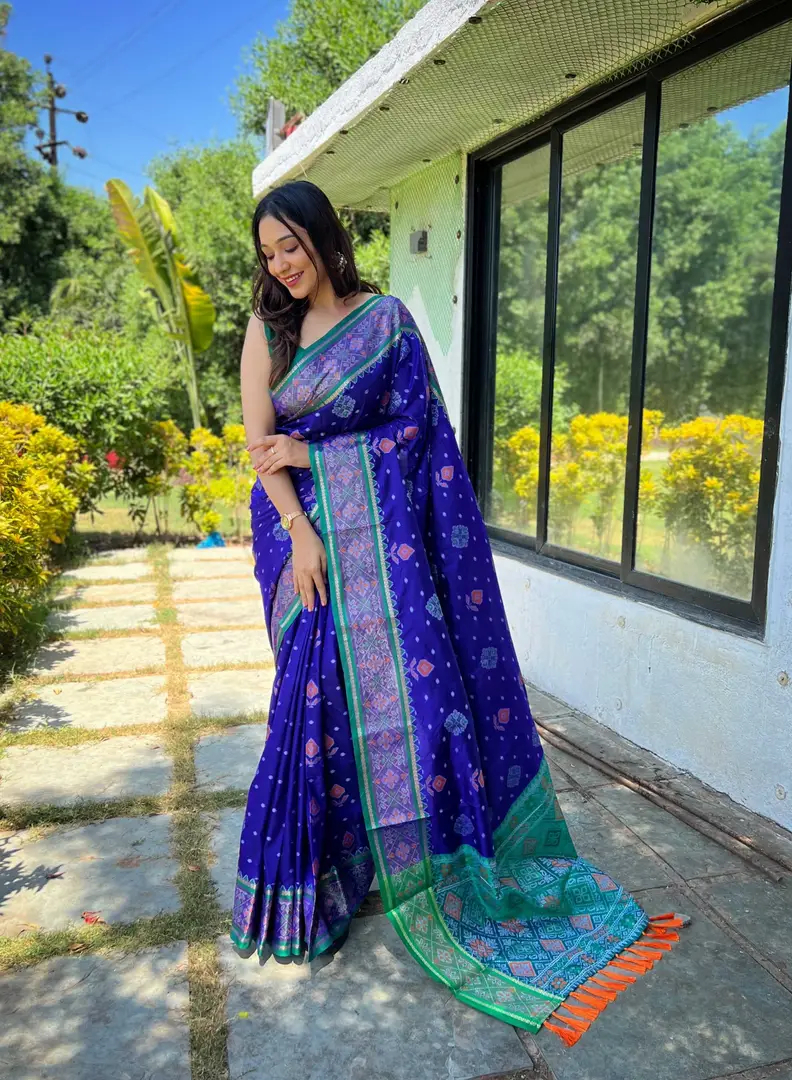Women's Banarasi Patola Silk Saree With Unstitched Blouse Piece