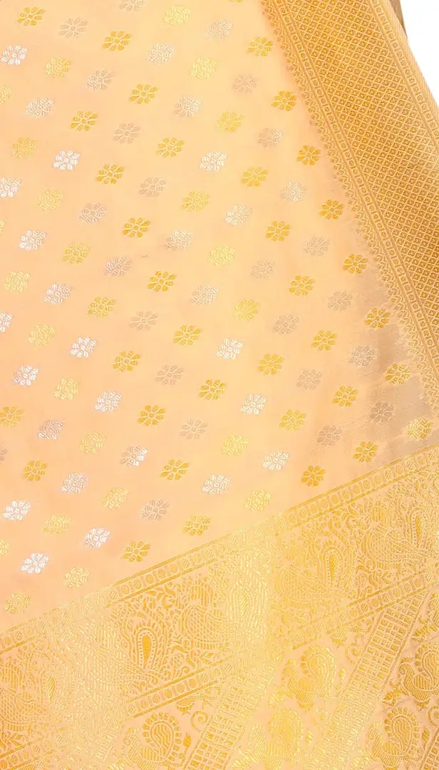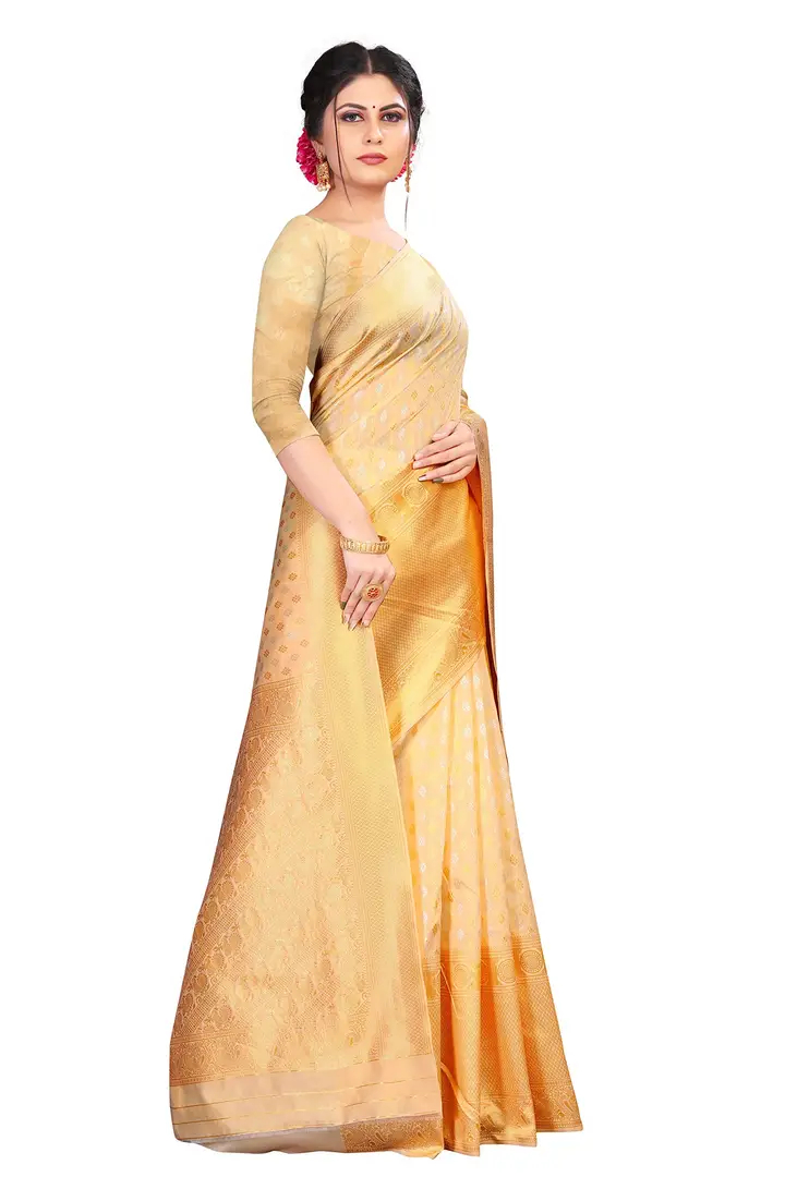 Women's Kanjeevaram Cream Color Silk Saree Pure Zari Traditional Women's Wedding Piece Bollywood Designer