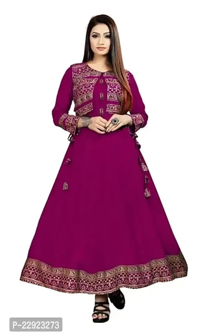 Women's Rayon Printed Anarkali Kurti With Short Jacket