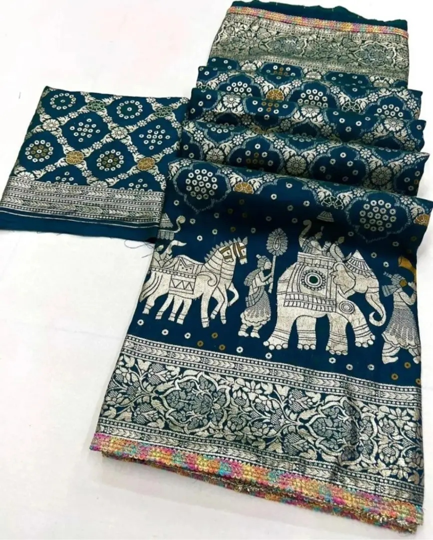 Bridal Chanderi Cotton Bandhani Jacquard Weaving Saree With Blouse Piece
