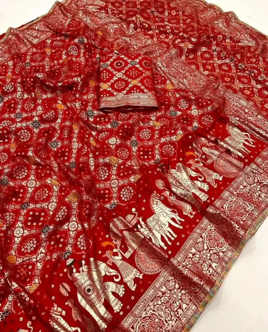Bridal Chanderi Cotton Bandhani Jacquard Weaving Saree With Blouse Piece