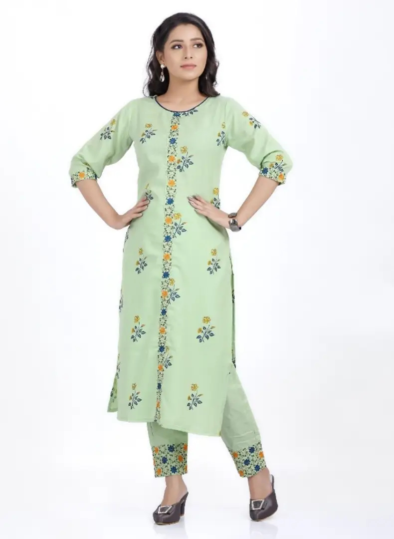 Cotton Embroidered With Foil Printed Kurti With Pant For Women.