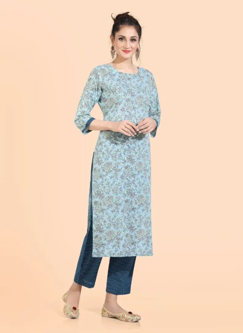 COTTON STRAIGHT PRINTED KURTI WITH PANT FOR WOMEN.