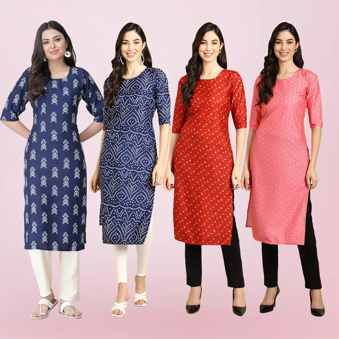 Multicoloured Crepe Ethnic Motif Kurtas For Women