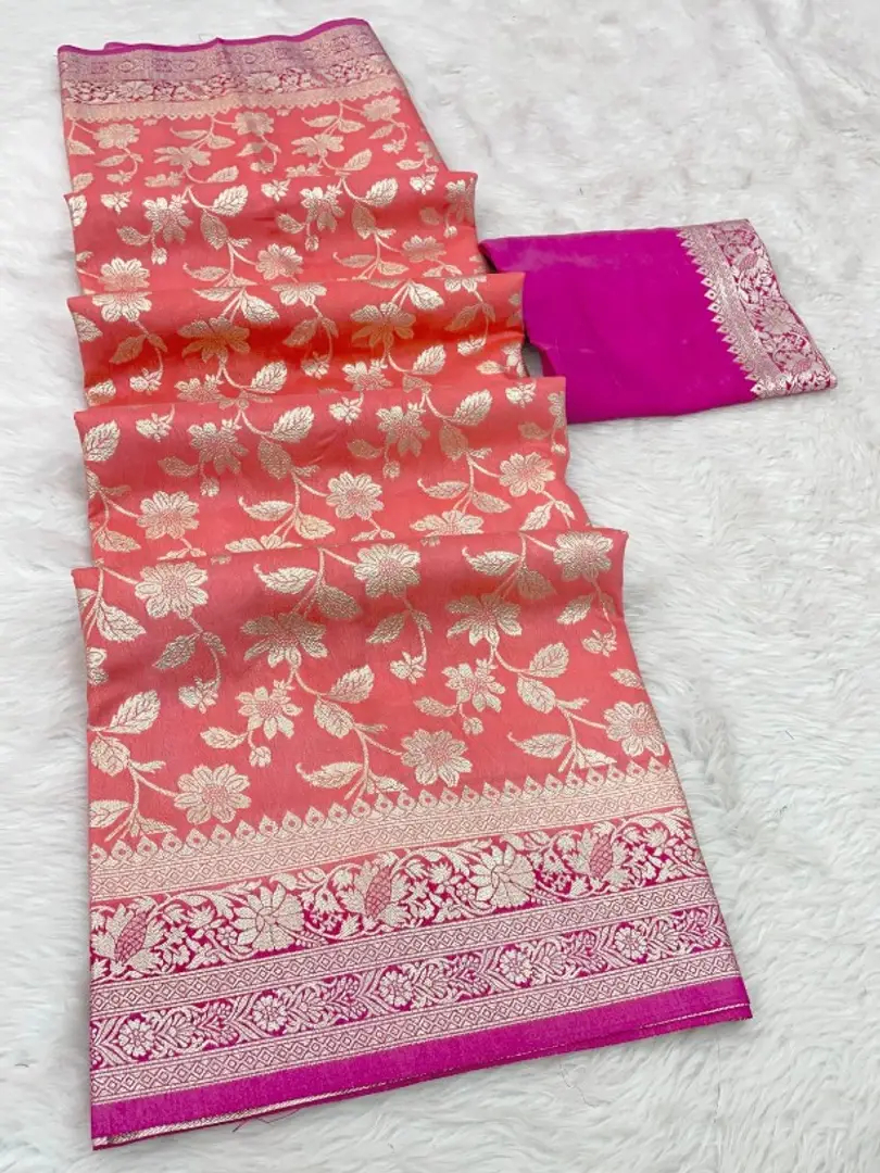 Partywear Banarasi Dola Silk Zari Work Saree With Blouse Piece
