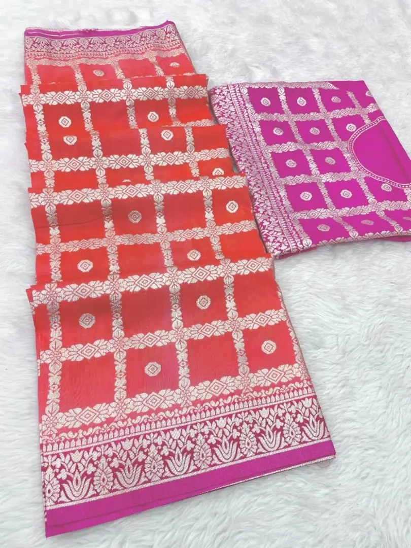 Partywear Banarasi Dola Silk Zari Work Saree With Blouse Piece