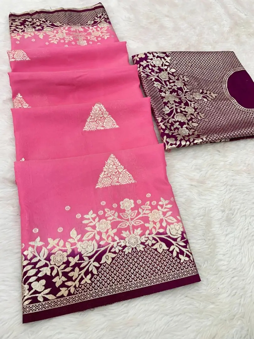 Partywear Banarasi Dola Silk Zari Work Saree With Blouse Piece