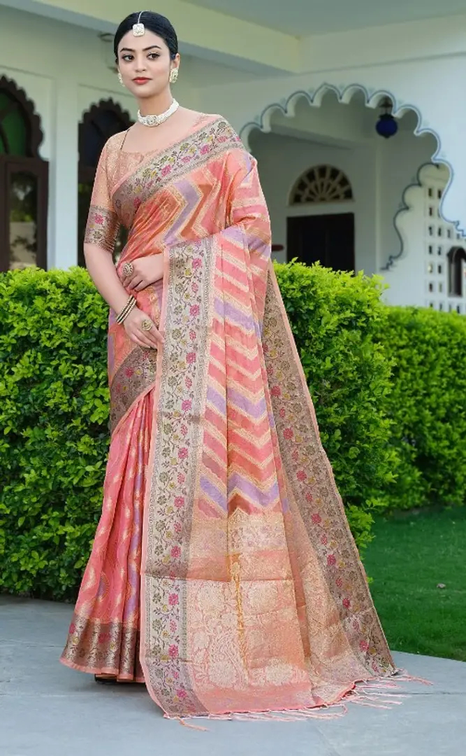 Soft Organza Saree With Meena Work All Over With Fancy Jacquard Border Of Pure Jari Work.