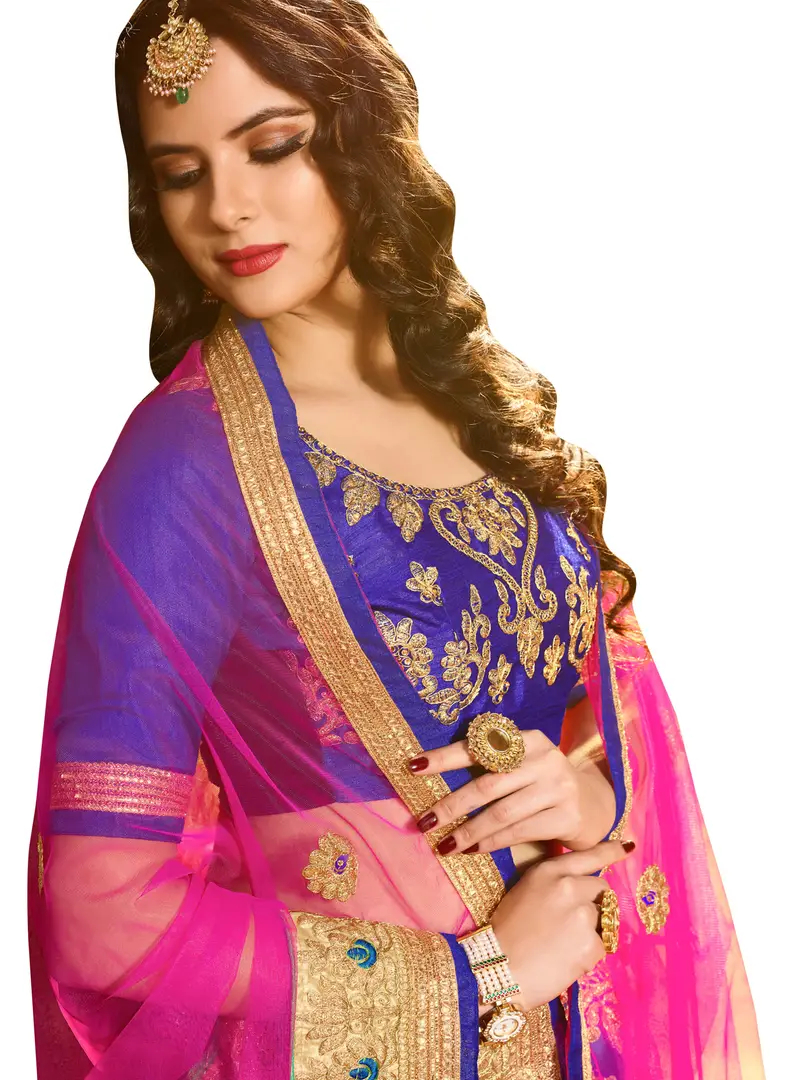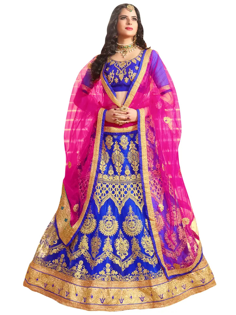 Stylish Blue Net Embroidered Lehenga Choli With Dupatta For Women