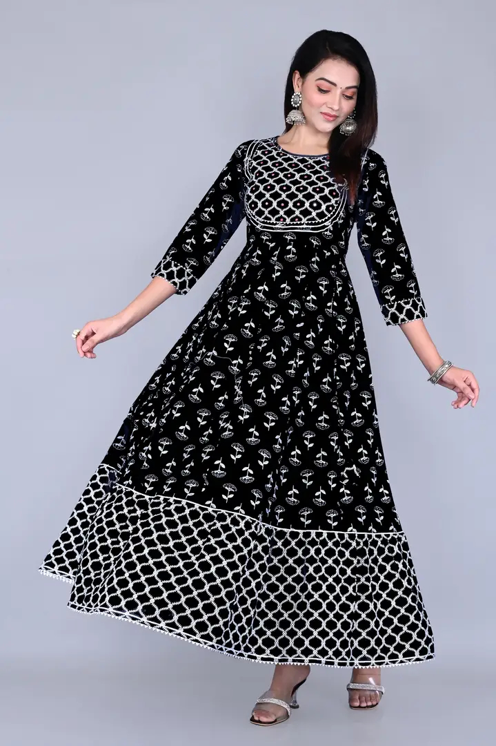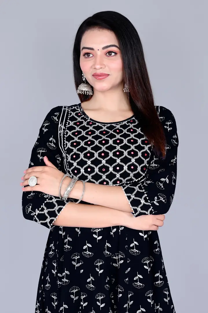 Stylish Navy Blue Rayon Handwork Anarkali Kurta For Women