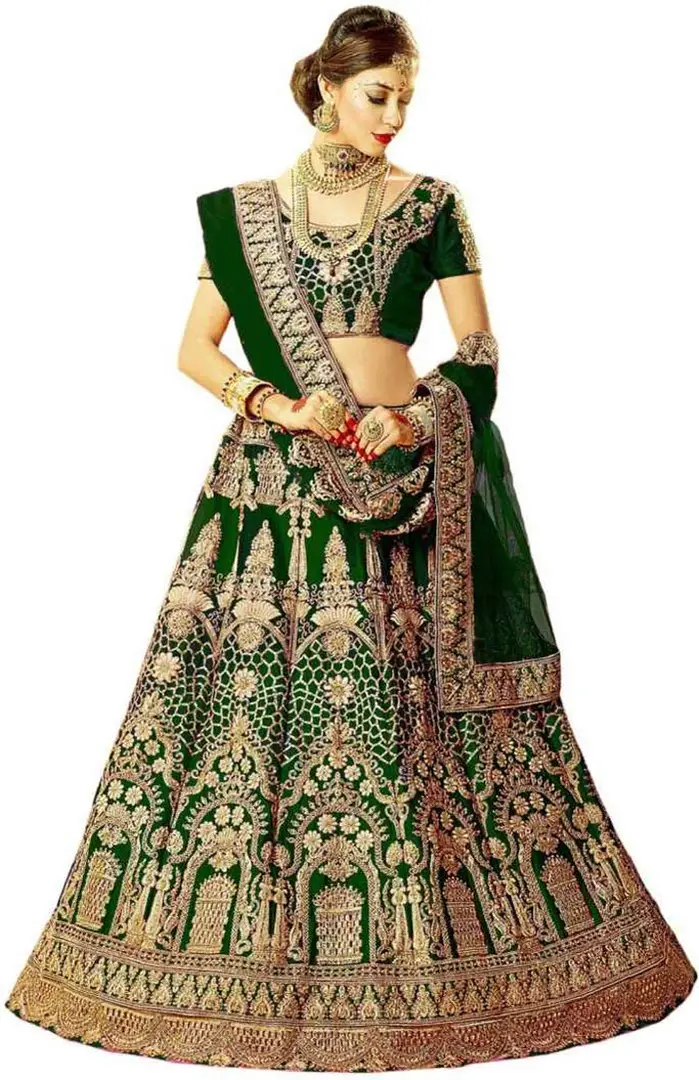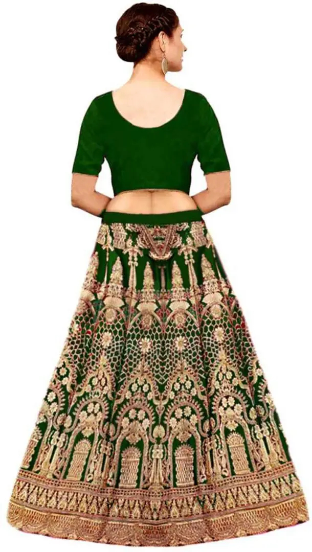 Wellesta Women's Satin Semi Stitched Lehenga Choli (SB-007_Green_Free Size)