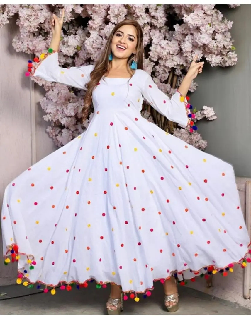 White Rayon Pom Pom Kurtas For Women