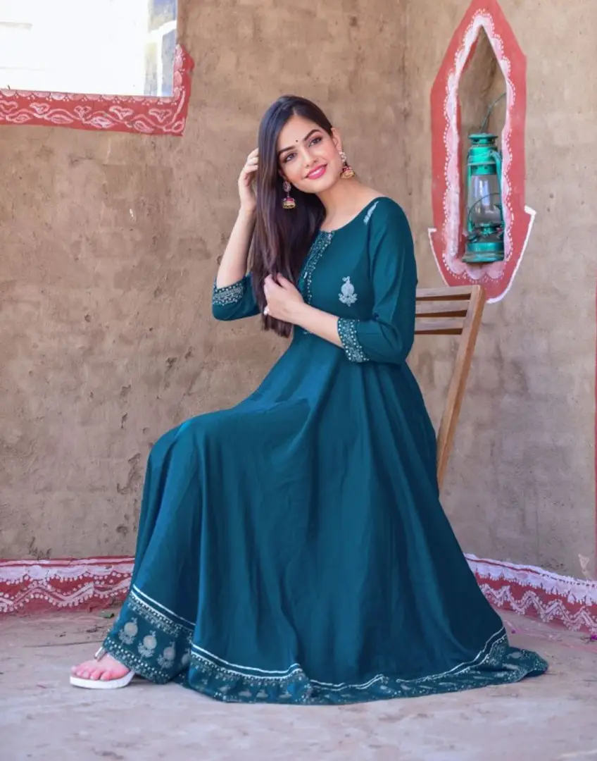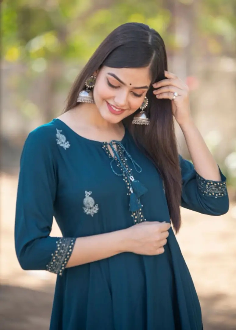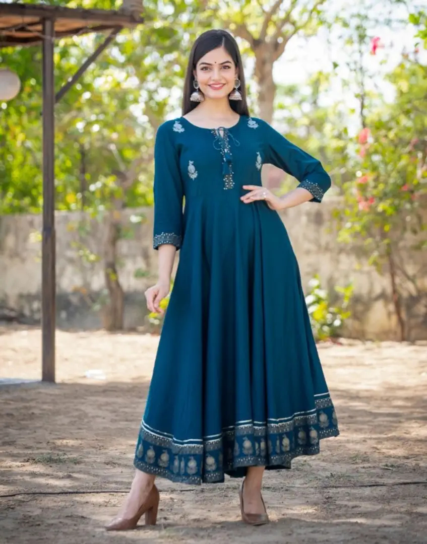 Women Embellished Rayon Anarkali Kurta