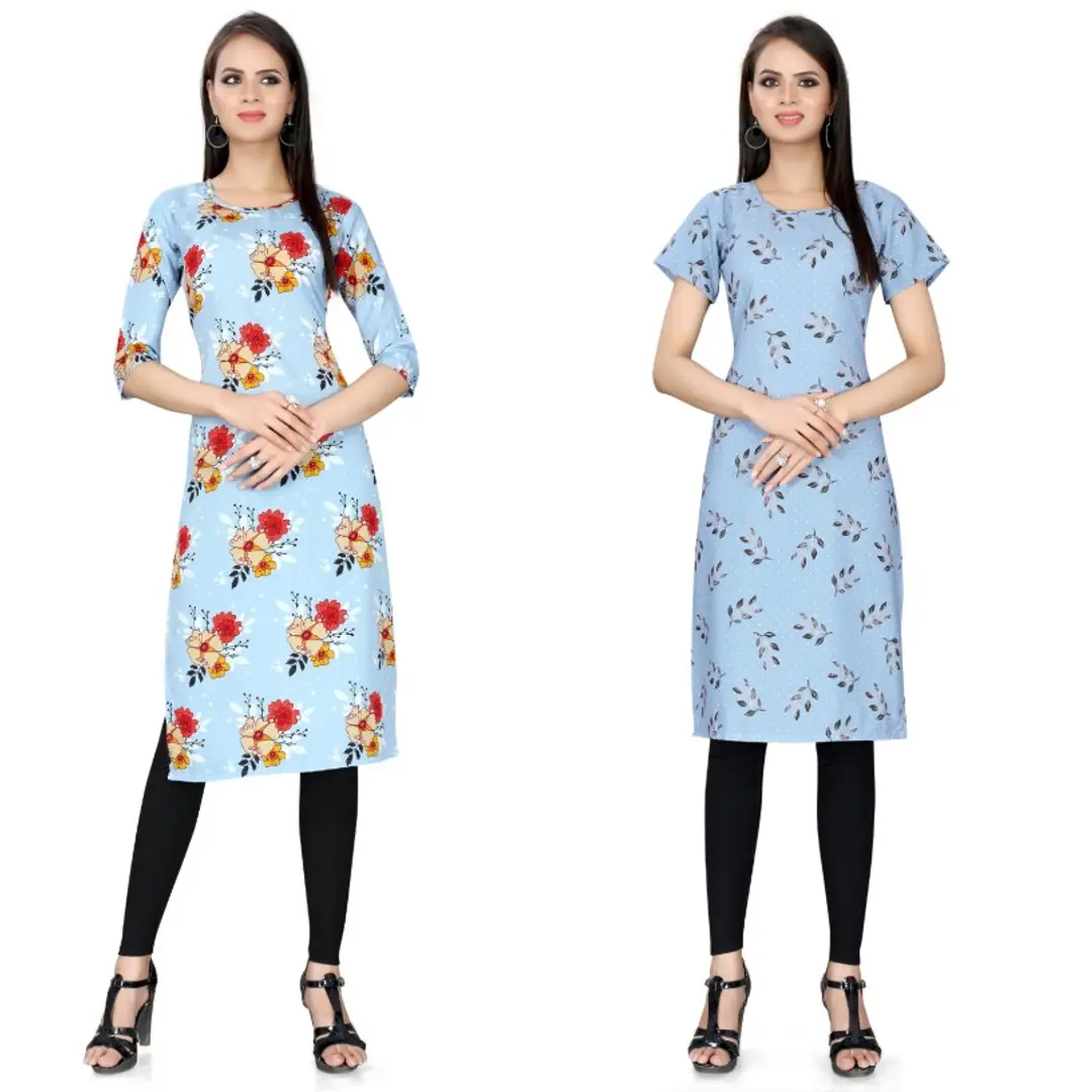 Women Printed Crepe Straight Kurti (Pack Of 2)