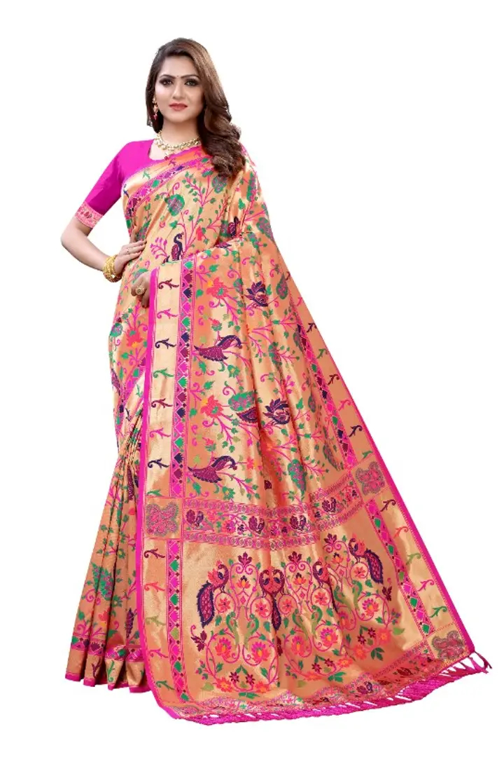 Women's Paithani Silk Saree With Unstitched Blouse Piece