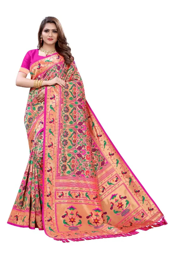 Women's Paithani Silk Saree With Unstitched Blouse Piece