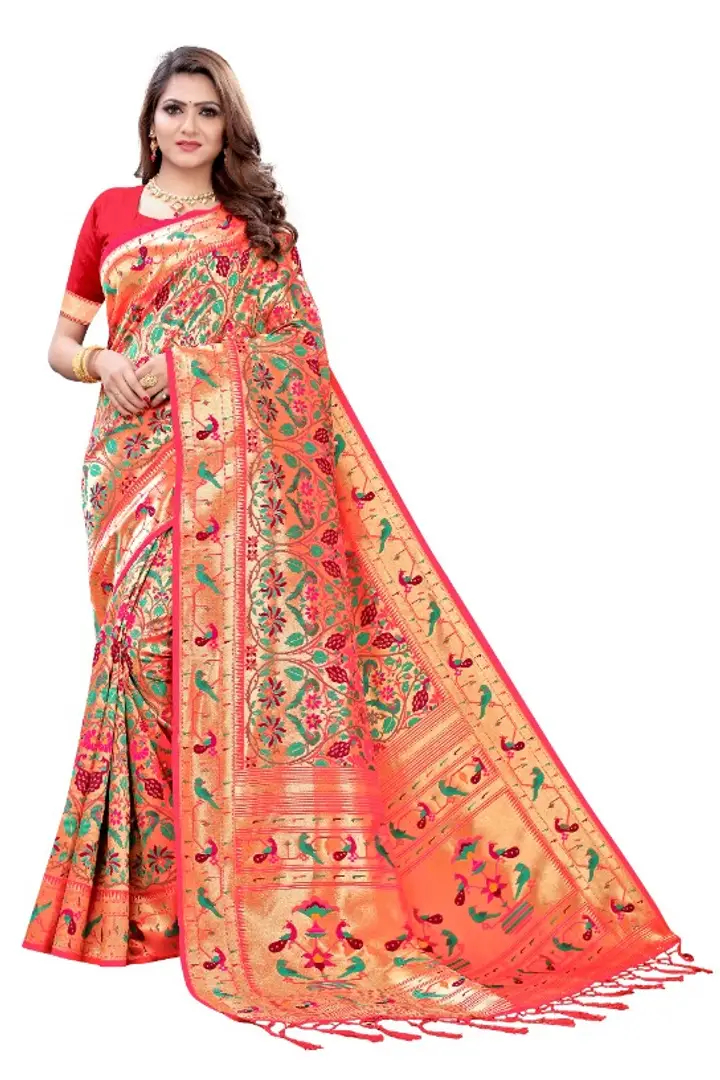 Women's Paithani Silk Saree With Unstitched Blouse Piece