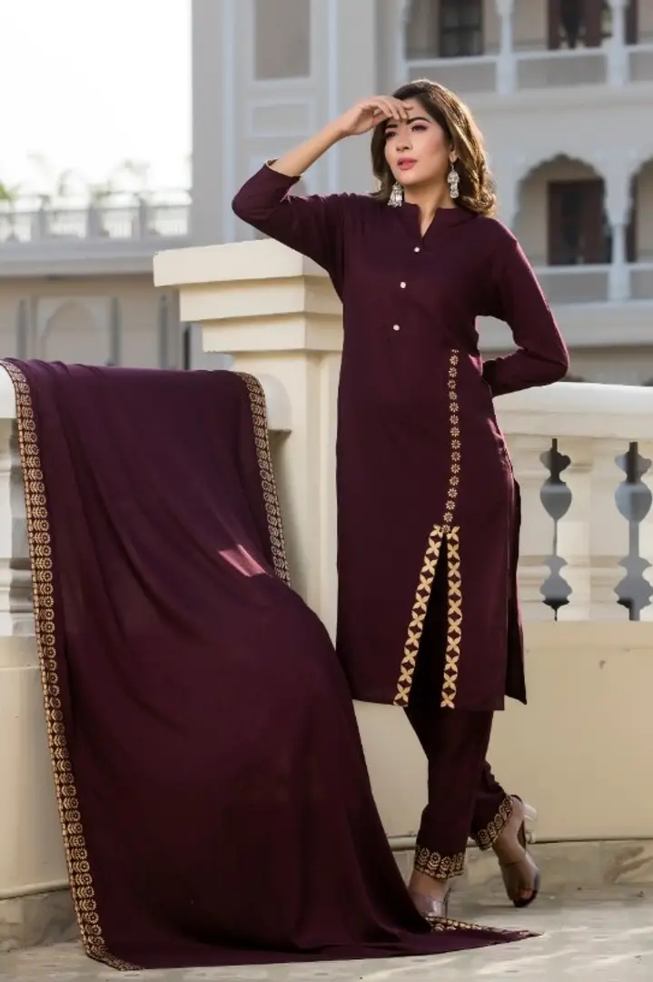 Women's Rayon Kurta, Bottom And Dupatta Set