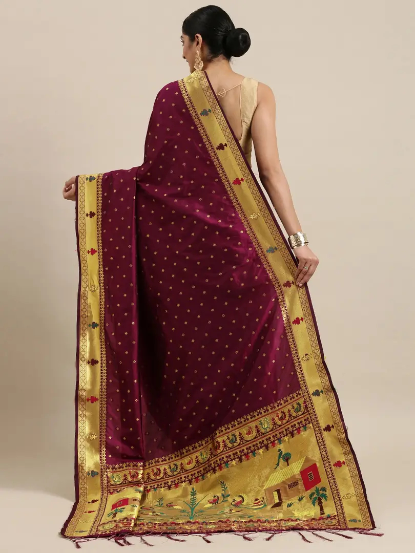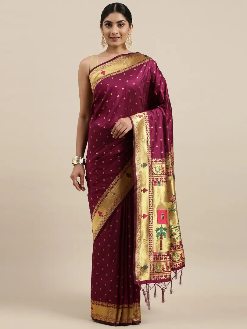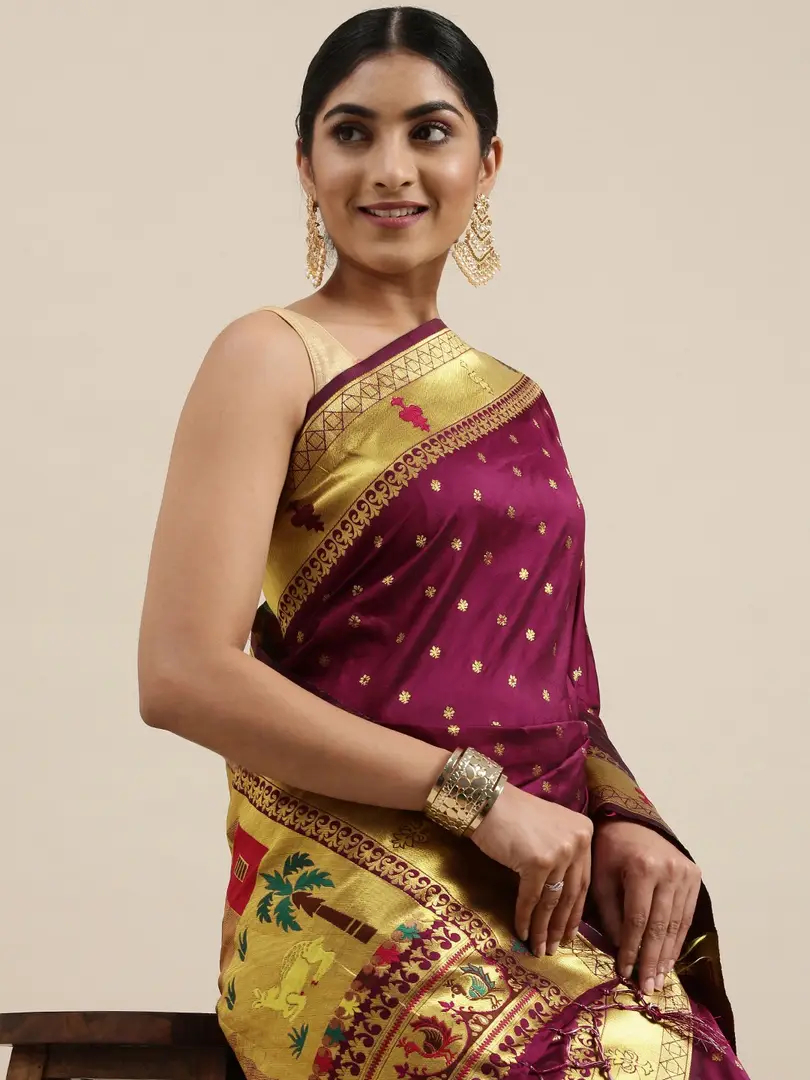 Womens Paithani Silk Saree With Unstitched Blouse Piece