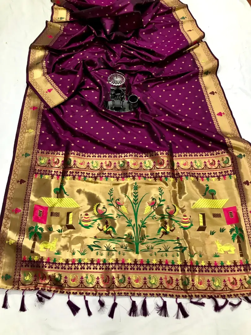 Womens Paithani Silk Saree With Unstitched Blouse Piece