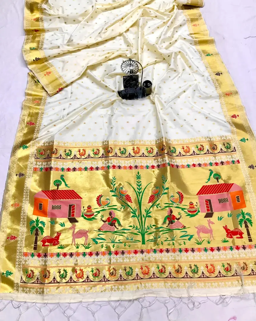 Womens Paithani Silk Saree With Unstitched Blouse Piece