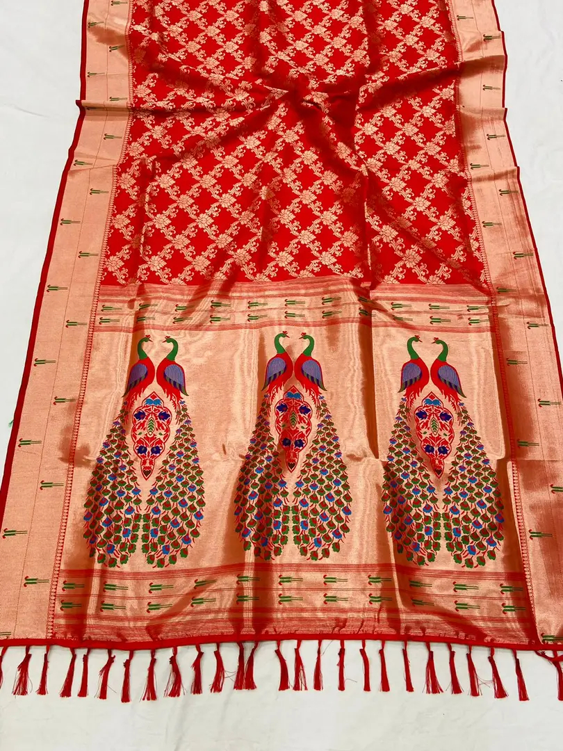 Women's Paithani Silk Saree With Unstitched Blouse Piece