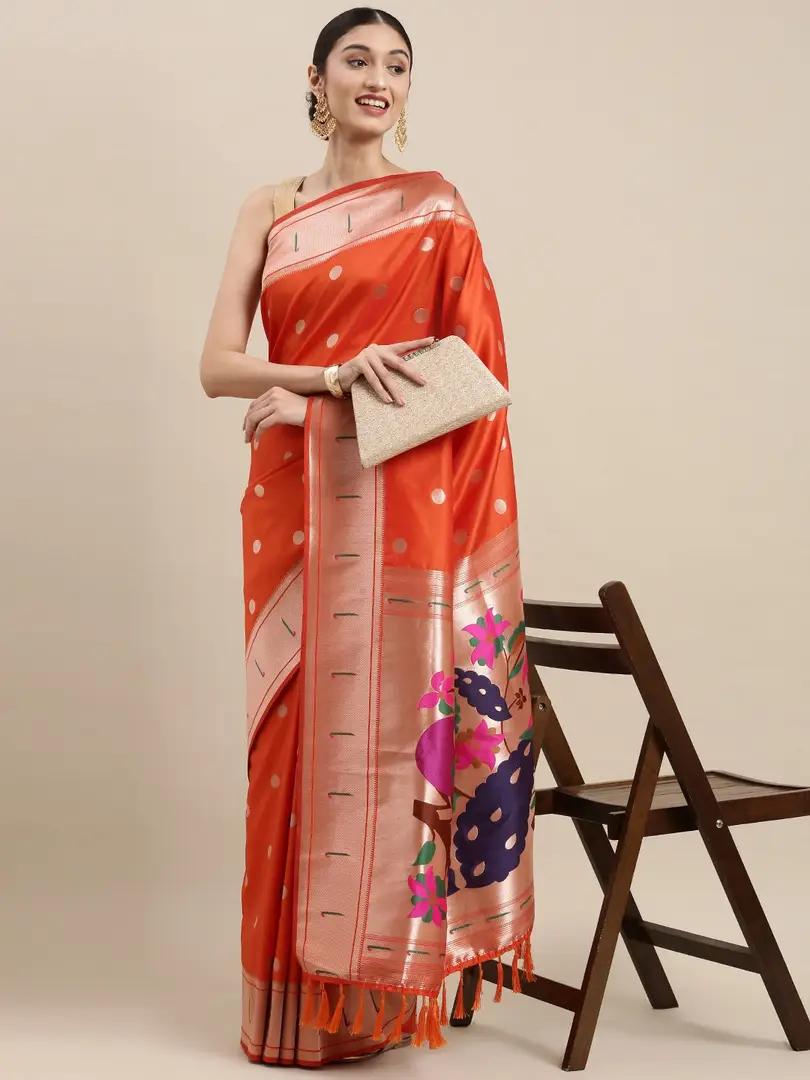 Women's Paithani Silk Saree With Unstitched Blouse Piece